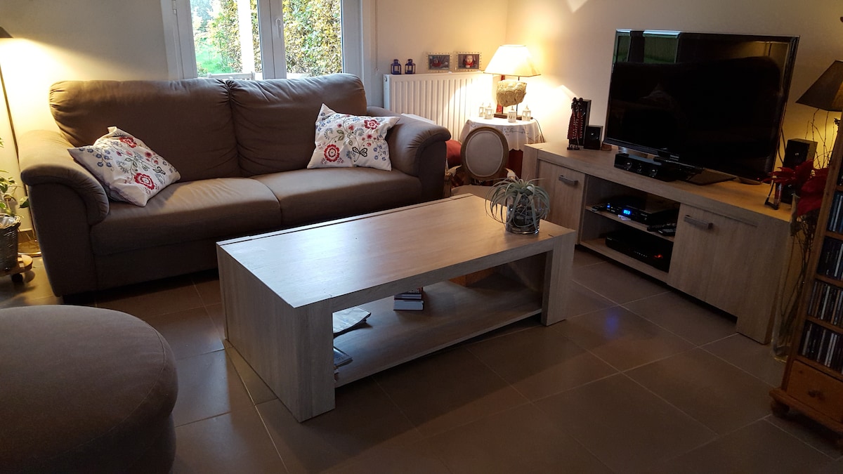 Corps de logis indépendant de la maison des propriétaires, situé dans un écrin de verdure. Le Cottage vous séduira autant par sa grandeur, que par son calme ou sa vue magnifique sur les champs. Idéalement situé à côté du Golf de Waterloo, à deux pas des accès aux différents Ring. Nous avons une belle terrasse à partager. Le logement dispose du wifi et d’une télé ou vous pourrez vous connecter avec votre compte Netflix ou autres..