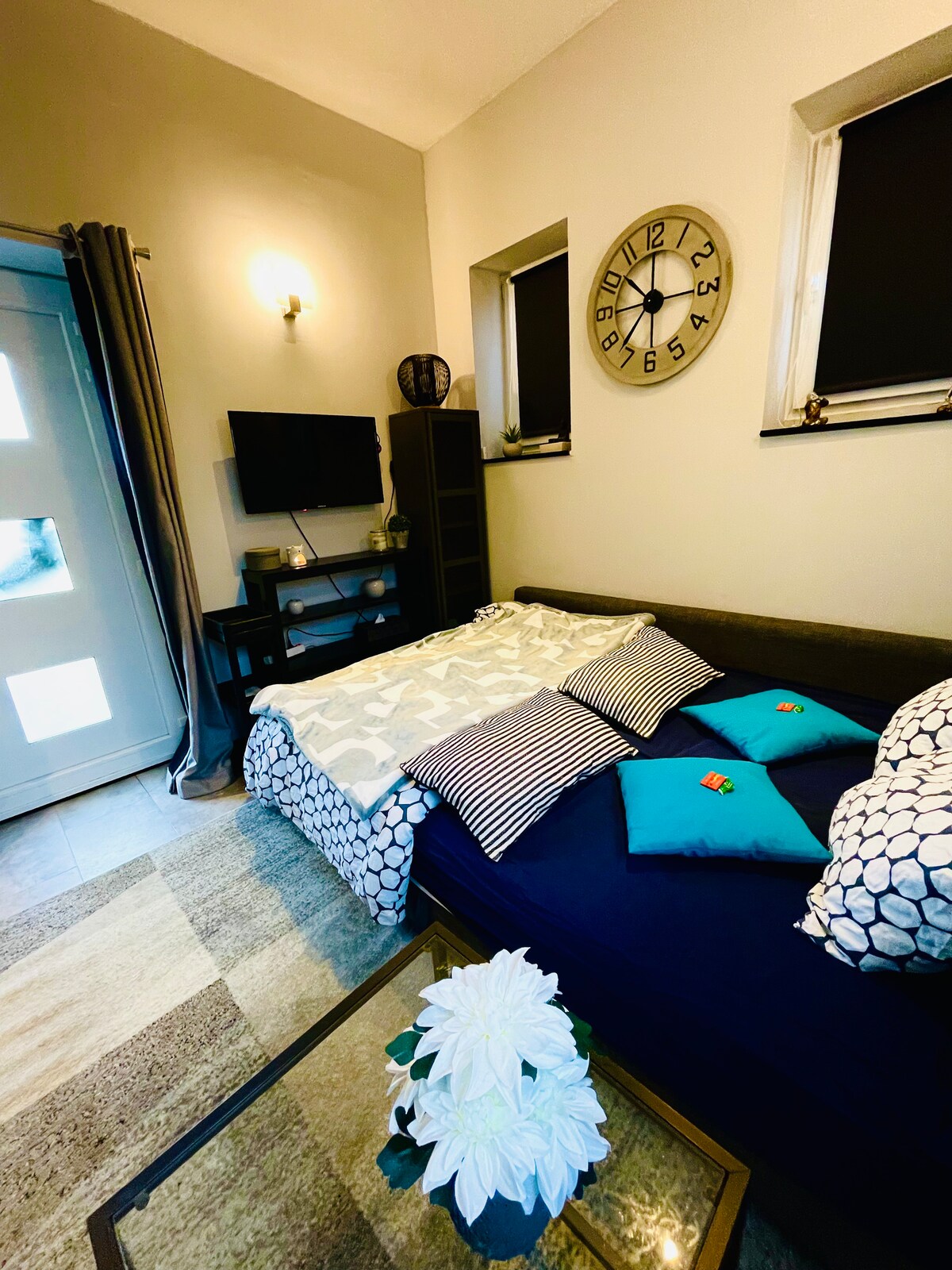 Annexe d’une grande maison familiale composé d’une entrée privé qui donne sur un grand salon équipé d’une tv, frigo , micro-ondes , wifi ainsi qu’une grande chambre à coucher équipée d’une garde robe commode , et douche .Accès à une toilette avec un coin d’eau . L’habitation se situe dans le centre de Braine le comte . A proximité des grands axes routiers. A 500m de la grande place, poste, banque, supermarché, rue commerçante. A 800m de la gare.