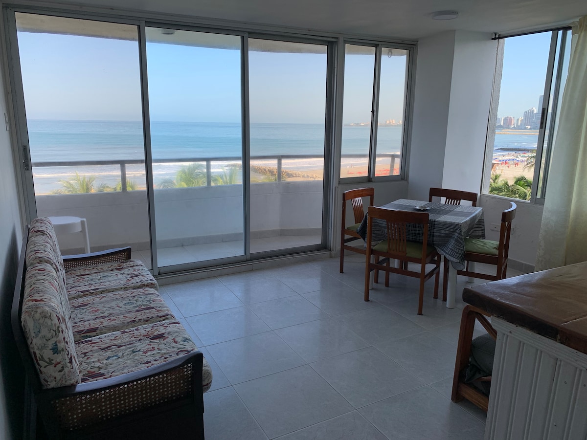 Relájate con tu familia en este lugar frente al mar. Fue equipado, pensando en el bienestar de nuestros huéspedes. Tiene 2 alcobas amplias y 2 baños con agua caliente. En la zona social hay TV y juegos de mesa como ajedrez y dominó. La cocina se encuentra equipada. Disponible lavadora/secadora. El apartamento tiene TV cable y WIFI. Contamos con piscina infinita, jacuzzis, sauna, turco, gimnasio y juegos infantiles. El edificio está a 4 min. del aeropuerto y a 1 min la Ciudad Amurallada.