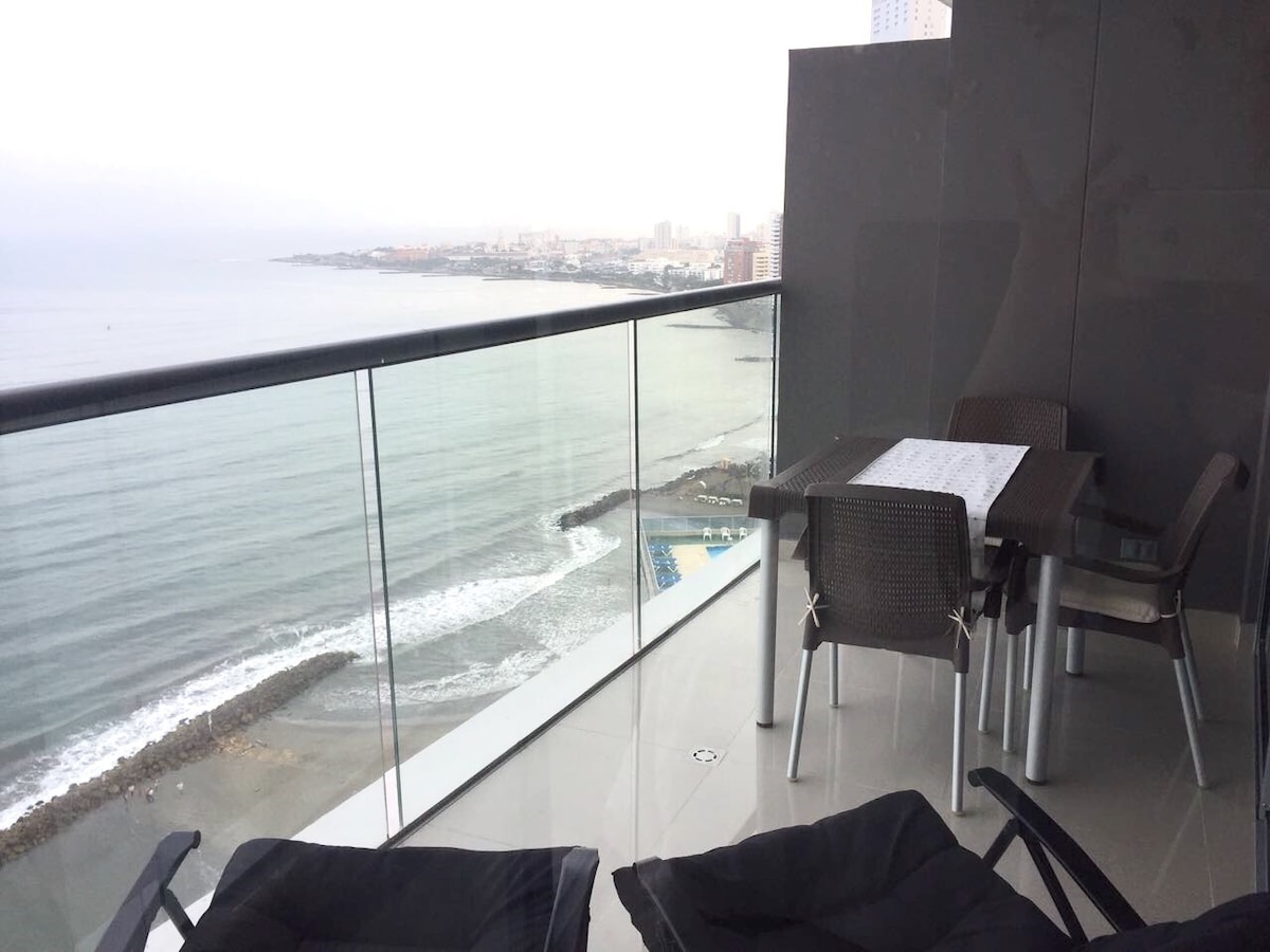 Perfect place to experience luxury and tranquility in Cartagena. Our suite offers a unique upscale atmosphere with beachfront views of the magnificent Caribbean Ocean. Our unit has been designed for guests who seek to enjoy the perfect combination between Zen & High Living vibes. Hear the splash of the waves when you wake up and when you are ready for a deep sleep. This modern building also features top of the art amenities like Gym, Jacuzzi and its popular Infinity Pool with breathtaking views