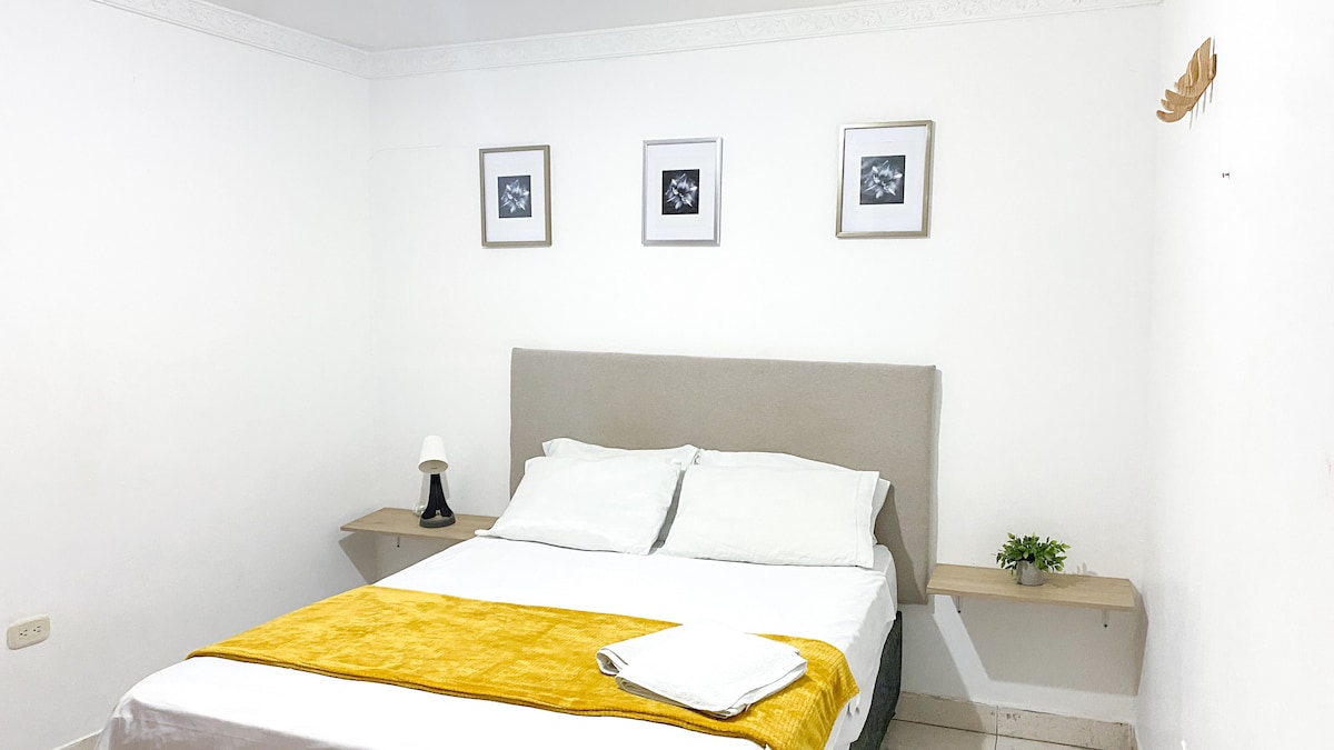 This studio enjoys a prime location in the city. It’s just half a block from the airport, the peaceful beaches of the Crespo neighborhood —free of street vendors— and the Crespo Linear Park. Within walking distance, you’ll also find restaurants, supermarkets, pharmacies, beauty salons, and public transportation stops, including TransCaribe and taxis. Plus, Cartagena’s Historic Center is only a 10-minute drive away.