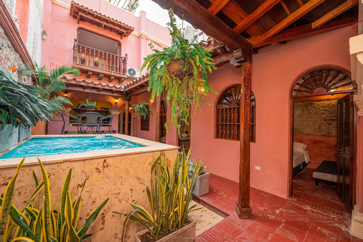 This stylish unique house is located in the Centro Historico of Cartagena, in the trendy neighbourhood of San Diego. It is a tasteful home for a romantic hideout. This property offers a refreshing private pool, a small rooftop terrace perfect for sunset cocktails, A/C where needed and the option to cater for 5 guests. Right next to great bars and restaurants, this stylish Historical Colombian home is filled with great details, high ceilings, wooden beams, antique bath, and quality amenities.