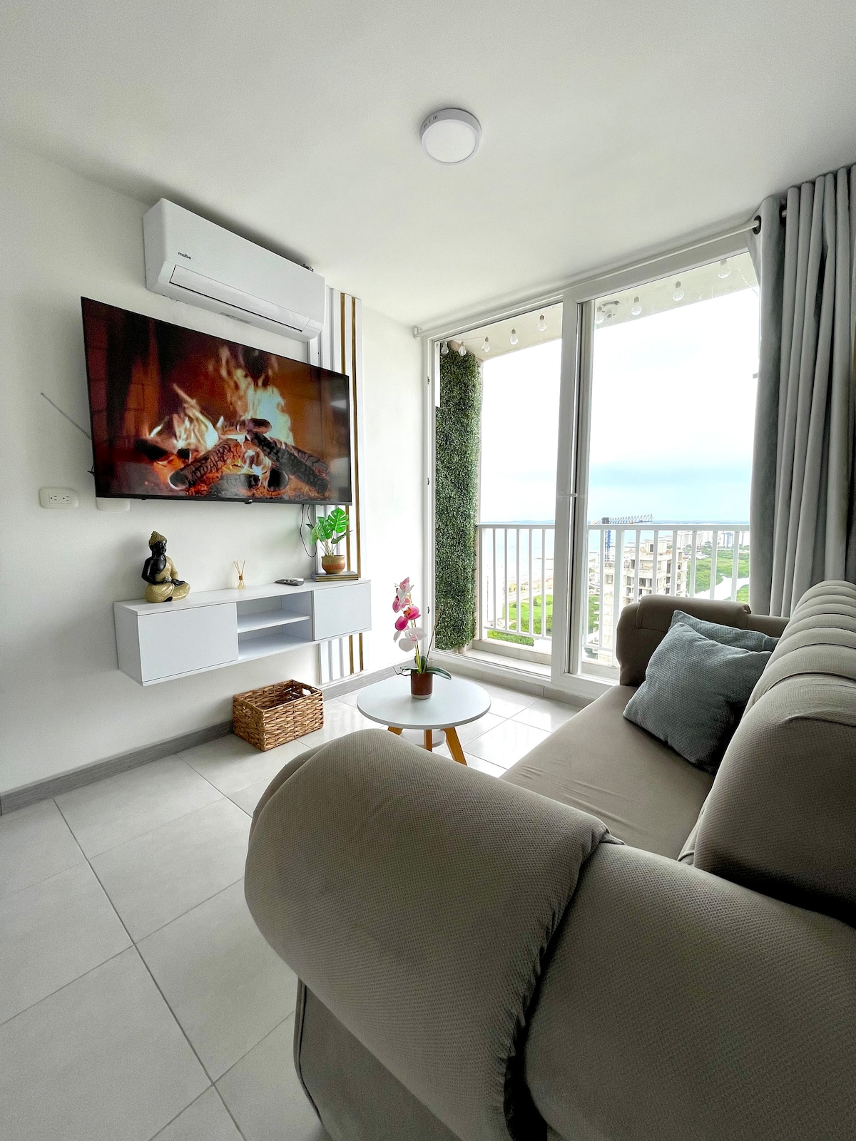 •Gr8 Seaview and Walled City view •Fully equipped •24/7 security •Room+living room+balcony •2 bathrooms with independent showers(hot water) •A/C •WiFi •TV 4K -Early/late flight? We store -reasonable- luggage for free (ask in advance) •Washing Machine •Free Parking •Pool and Jacuzzi •20 min to Walled City •Mattress/Sheets/towels constantly sanitized •If you know little about C/gena, let me guide you!