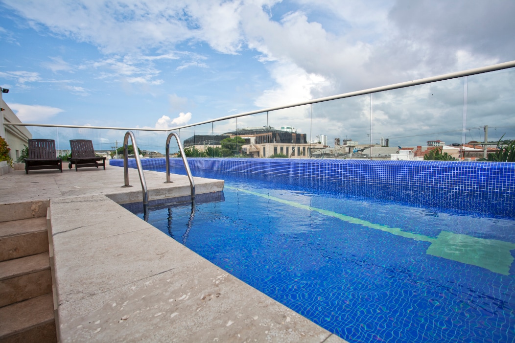 This is one of the very few Luxury buildings you’ll find in the old city. Counts with a 24/7 doorman/concierge, Two Rooftop Pools, Sauna, great common spaces and incredible garden. It also counts with a Generator, very important in Cartagena. Location is unbeatable it’s half a block away from Plaza San Pedro, a plaza full of life, art, restaurants and bars. The apartment is on a second floor with lots of sunlight, and full kitchen and A/C.