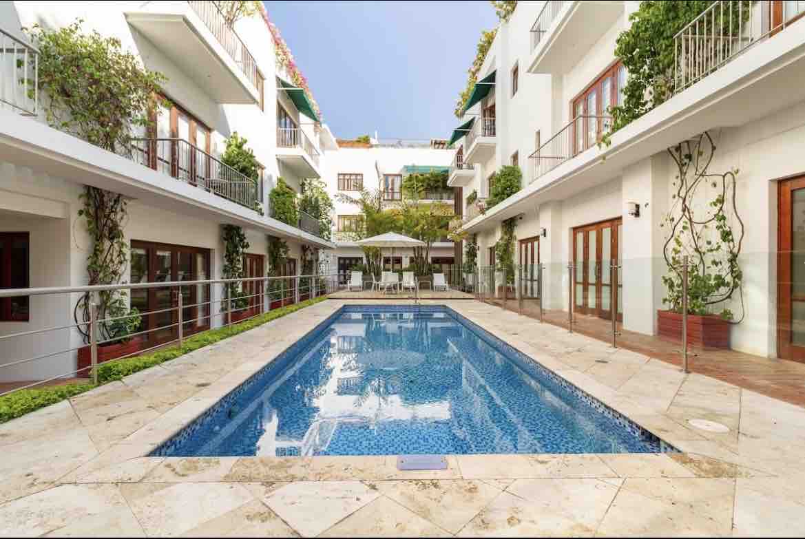 This is one of the very few luxury buildings you’ll find in the old city. Counts with a 24/7 doorman/concierge, two rooftop pools, great common spaces and incredible garden. It also counts with a power plant very important in Cartagena. Location is unbeatable it’s half a block away from plaza San Diego, a plaza full of life, art, restaurants and bars. The apartment is in the second floor with lots of sunlight, full kitchen and Air conditioning. **Due to covid no guests outside the reservation**