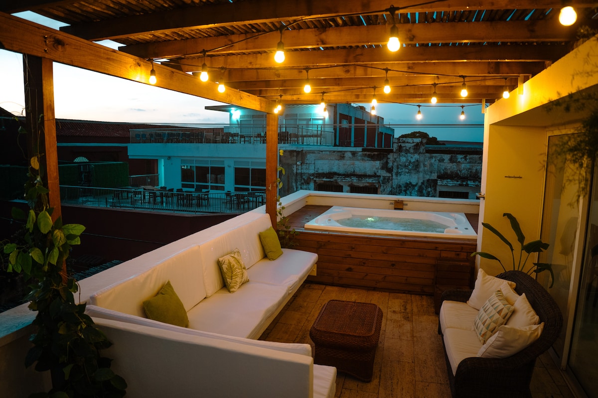 This beautiful apt. is located inside the walled city in the Getsemani neighborhood. The building is brand new with great views from the shared terrace. The studio has a very comfortable living area and a private ambient water jacuzzi to freshen up from the hot sun. It's in walking distance from the best sights of the city center; restaurants, bars, squares. Perfect for solo travelers, couples or small groups of max. 4 people.