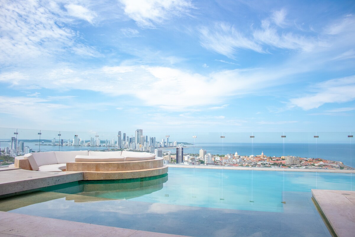 🏆 AD Design Icons Awards Finalist 2022 - Featured in Axxis 2022 Yearbook as one of Colombia's Best Homes Casa Azzurra Getsemaní: designer house of 5,812 sq ft for 10 guests in the vibrant Getsemaní neighborhood. Ideal for large groups, family reunions, and special celebrations. Includes: complimentary airport transfers (round trip), daily gourmet breakfast, private concierge 24/7, and daily housekeeping service. Customize your stay with catering from our private chef and exclusive experiences.