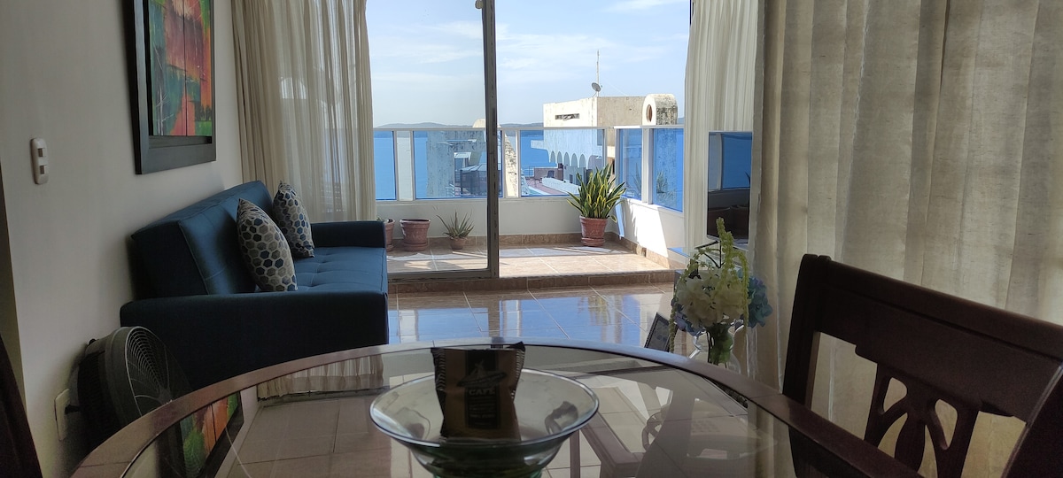 Recién renovado apartamento con vista única al mar y zona de piscinas, aire acondicionado en todos sus espacios, internet de alta velocidad en fibra óptica, ubicado a 5 minutos del aeropuerto, a 10 minutos en taxi de la ciudad amurallada y con acceso directo a las mejores playas de Cartagena, cuenta con gimnasio en las zonas comunes. Ubicado en la zona norte (morros) de hoteles como Holiday Inn, Radisson, Sonesta, Las Americas