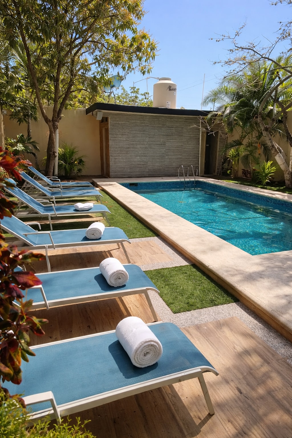 Full-equipped studio within a small, private complex of 8 studios, all of them designed to make you feel at home. Located in Playa del Carmen’s downtown, only 6 blocks away from the famous “5th Avenida” and 7 blocks from beautiful Caribbean beaches. Plus: a big supermarket one block away, banks, pharmacies, restaurants of local food all around. We have free parking subject to availability. Welcome!
