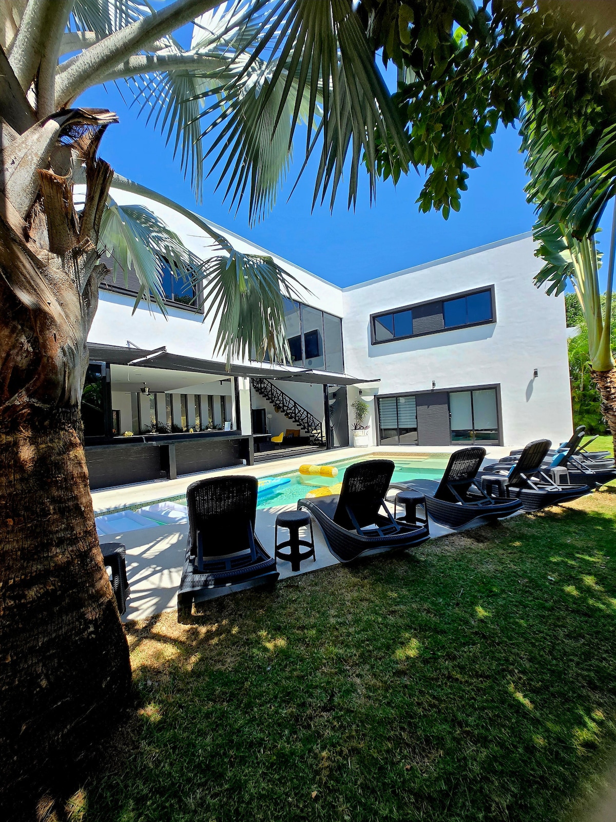 Famous VILLA VENUS - with the swimming pool in tropical garden, located 10 minutes walk from the 5th and the beaches, ideal for groups, families of up to 24 people in the Playacar Golf course. Garden equipped with hammocks. INCLUDED- Round trip Private Shuttle airport Cancun /Villa VENUS , cleaning 5/7, Gardener and pool service . water and életricity control . To make your experience in our Villa Perfect, your concierge can recommend the best excursions to see