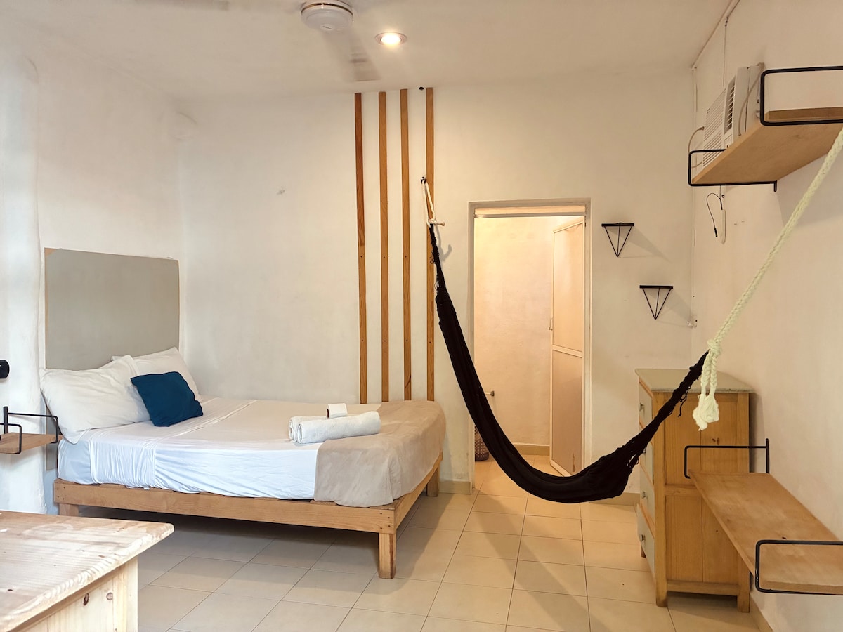 Escape the Tourist Hustle: Ideal for Business Travelers and Adventurers. This cozy, stylish room is perfect for budget-conscious visitors seeking comfort. Enjoy full access to a large pool and outdoor area at our scuba diving school. The room includes a ceiling fan, AC, fridge, coffee maker, and a nice bathroom. Wi-Fi and a cute desk area are also provided. Relax on the shared patio with hammocks on the first level.