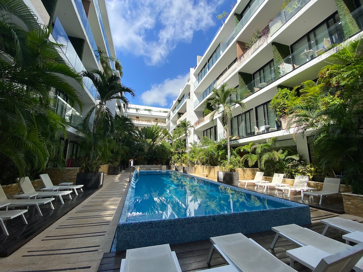 Enjoy a bright, stylish and cozy apartment in the heart of Playa del Carmen. Just a short walk to the beach and Fifth Avenue but at the same time away from the crowd. The building offers two amazing pools one on the ground and one on the roof top with incredible ocean view. You will also enjoy premium amenities including SPA, Gym, cinema, game room, deli a welcome lobby with concierge service and security 24/7. Free underground parking lot. EXCELLENT Wifi. Your perfect getaway in Playa !