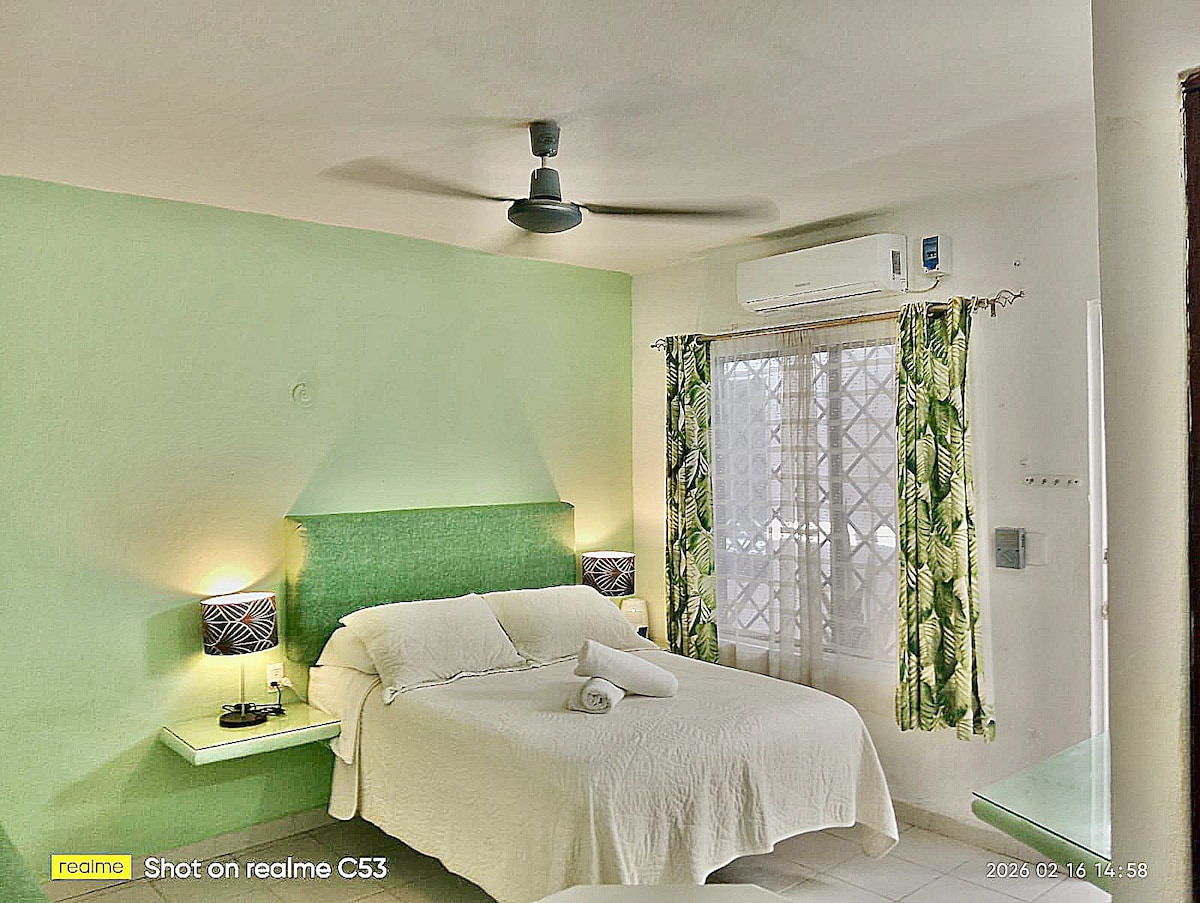 Large private room on 5th between 10&12, the most important part of 5th Avenue near the main Bars and Restaurants in the center. One block from Faro beach. If you want to know Cozumel we are 6 blocks from the ferry and 5 blocks from the ADO station. While you are in the heart of the center, the place has a lot of vegetation and large trees. Other references are Cocobongo one block away and Plaza Corazón half a block away. For this reason, this area is not very quiet.