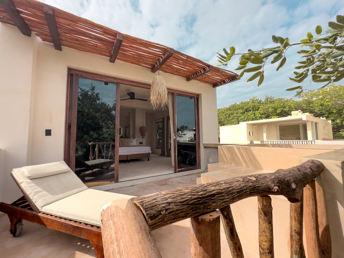 Experimentá comodidad y tranquilidad en nuestra amplia y acogedora SUITE ALUNA. Disfrutá de una cocina equipada, cama King Size, Smart TV, WiFi de 500 Mbps y una terraza con jacuzzi privado con vista a la naturaleza. Descansá en este entorno sereno, dentro del complejo CASA JUNGLA, ubicado en un fraccionamiento privado sobre la calle 38, a solo 2 cuadras de la 5ta Avenida, la playa, restaurantes y supermercados.