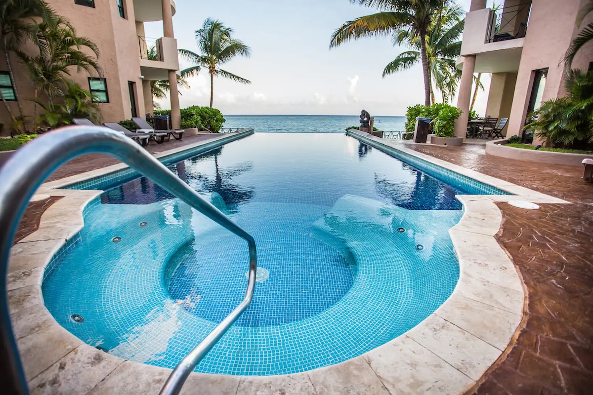 Third floor pent house in a landmark building in PDC with infinity pool and gorgeous views of the turquoise waters of the Mexican Caribbean. Enjoy your stay in this 3bd/2bath condo stocked w/ everything you need. Spectacular ocean views from living room & master bedroom. Watch the sunrise and sunset on the third floor roof top terrace equipped w/ hammock, lounge beds, dinning table and grill. Perfect location downtown only half a block from the famous 5th Ave. We offer in home COVID test!