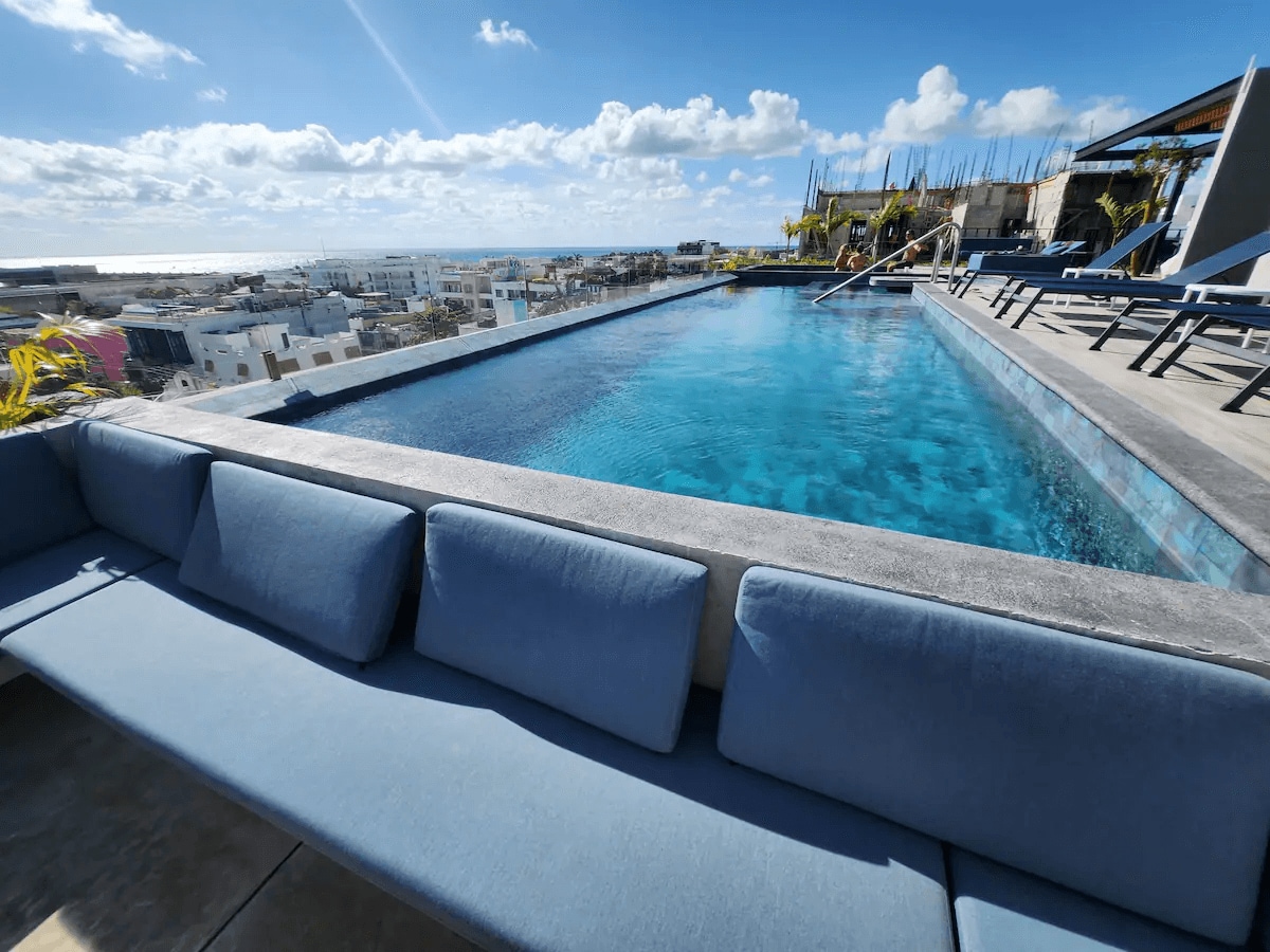 Luxury condo in prime Playa del Carmen, just steps from Mamitas Beach and a short walk to Quinta Avenida. Designed for comfort and refined coastal living, the residence features bright interiors, high-end finishes, a spa-style rain shower, private balcony with tranquil mangrove views, and fast fiber Wi-Fi. Guests enjoy an ocean-view rooftop with pool, hot tubs, and gym, plus 24/7 security and self check-in—an elegant retreat near top dining, shopping, culture, and nightlife.