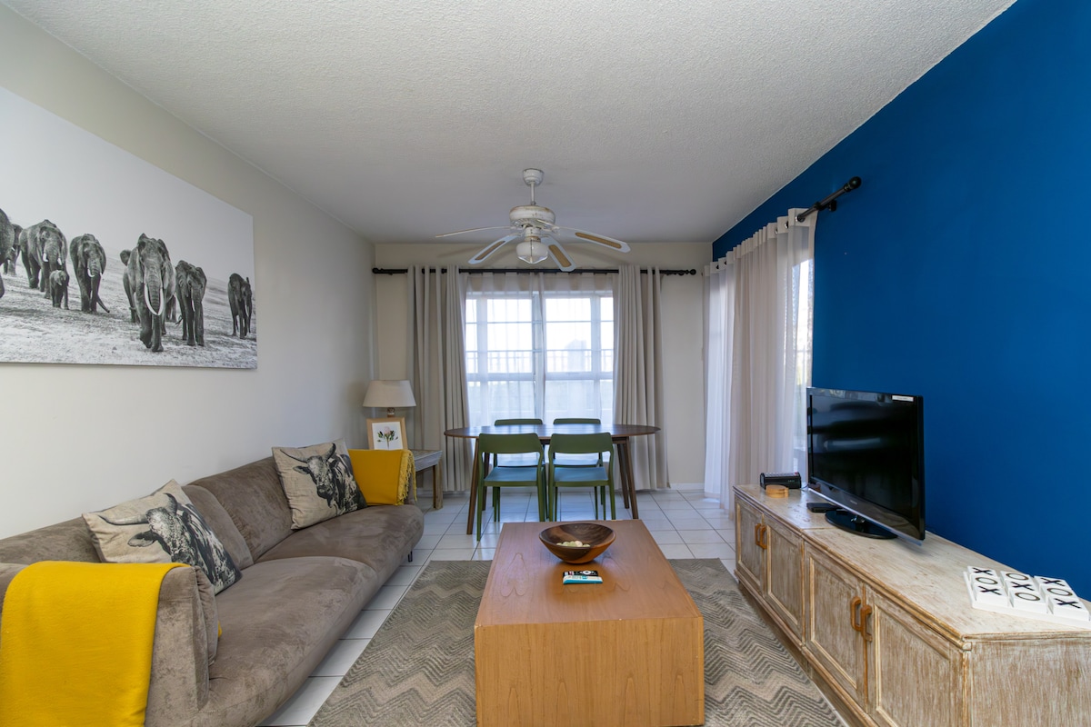 This apartment is in a secure complex comprising of 3 bedrooms, 2 bathrooms, and an open-plan kitchen, dining and living area. The 1st bedroom has a king bed, and an en-suite bathroom. The 2nd and 3rd bedrooms each contain a queen bed and share a bathroom. PLEASE NOTE: Please be sure to sign a code of conduct No Parties Refundable deposit is required on your arrival (R2000) No unregistered guests allowed. Please respect the noise curfew. (no noise after 9pm) Lost keys incur a replacement fee.
