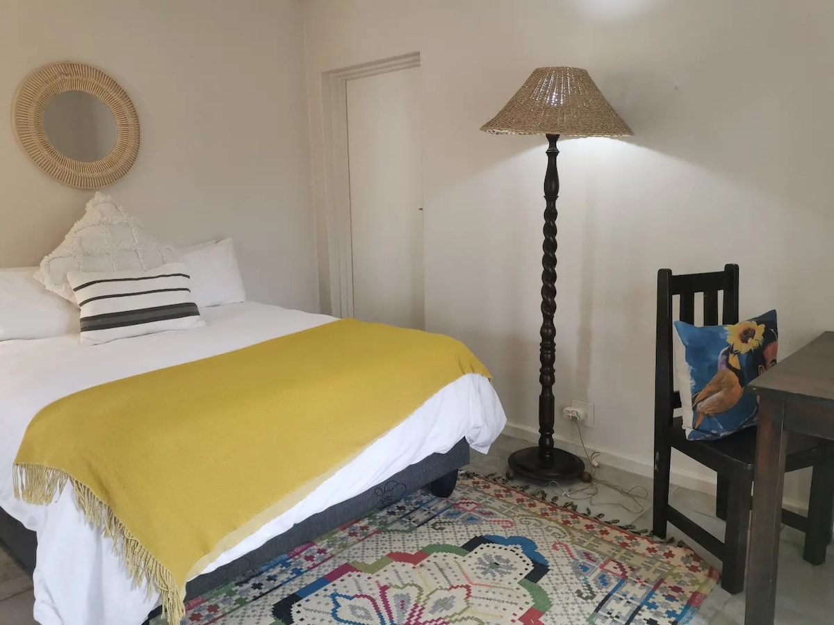 Ideal for leisure & business travellers, this place is separate to the main home, private, peaceful & well equipped. Clean, cosy & very affordable, located in the safe suburb of Kragga Kamma Park, the bedroom is airy, bright with a comfy queen XL bed & bathroom. The room contains a fan/heater, microwave, fridge, kettle, coffee machine, cutlery & crockery. Solar panels means no loadshedding. Enjoy 150 Mbps fibre uncapped wifi, USB power points & self service check in at a time to suit you.