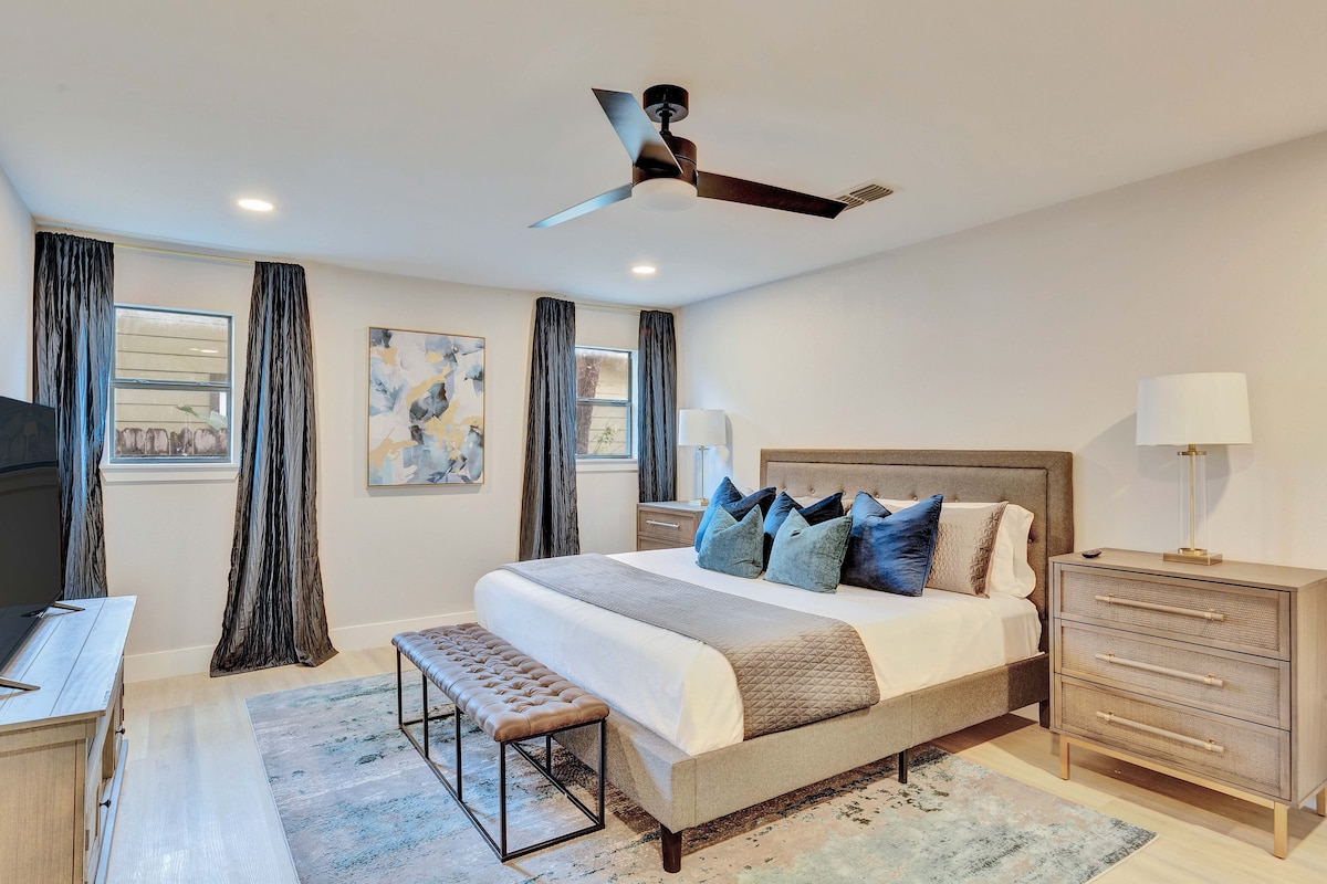 Welcome to Cerca Cove, your spacious luxury home near the Domain. Minutes away from local breweries, Bouldin Acres pickleball, Q2 stadium, K1 Speed go-karting, Top Golf, and fantastic dining, shopping, & entertainment. Retreat in style with quality furnishings from Crate & Barrel, West Elm, Article, Helix, and wall art from local Austin artists. Cozy up in the "great room" and enjoy the newly renovated, expansive backyard. This space is the perfect base for exploring Austin at your pace!