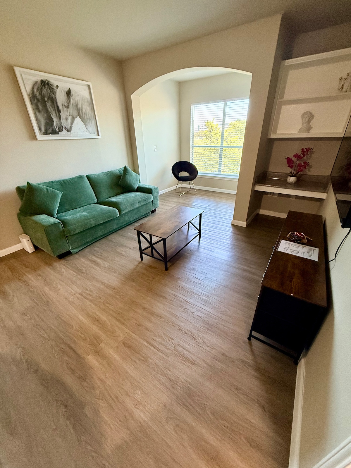 Settle into this bright and functional North Austin studio—crafted for comfort, convenience, and flexibility. Whether you’re visiting for business or leisure, this thoughtfully equipped space is ideal for relaxing, working, or exploring the city. ✔ Sleeps 4 – Queen Bed + Futon + Air Mattress ✔ Open Studio Layout ✔ Fully Equipped Kitchen ✔ In-Unit Washer & Dryer ✔ Smart TV with Roku Access ✔ High-Speed Wi-Fi ✔ Shared Amenities: Gym, Outdoor Lounge, Free Parking