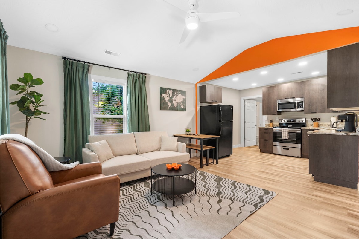 Escape to tranquility at our brand-new, upscale Scandinavian-inspired home nestled on 7.5 acres of pristine nature. Embrace minimalist elegance in our thoughtfully designed retreat, boasting sleek interiors flooded with natural light. Unwind amidst sweeping views of lush landscapes from expansive windows, or savor moments of serenity on the secluded outdoor porch. Experience a harmonious blend of modern luxury and cozy charm in this whimsical, nature-inspired retreat.