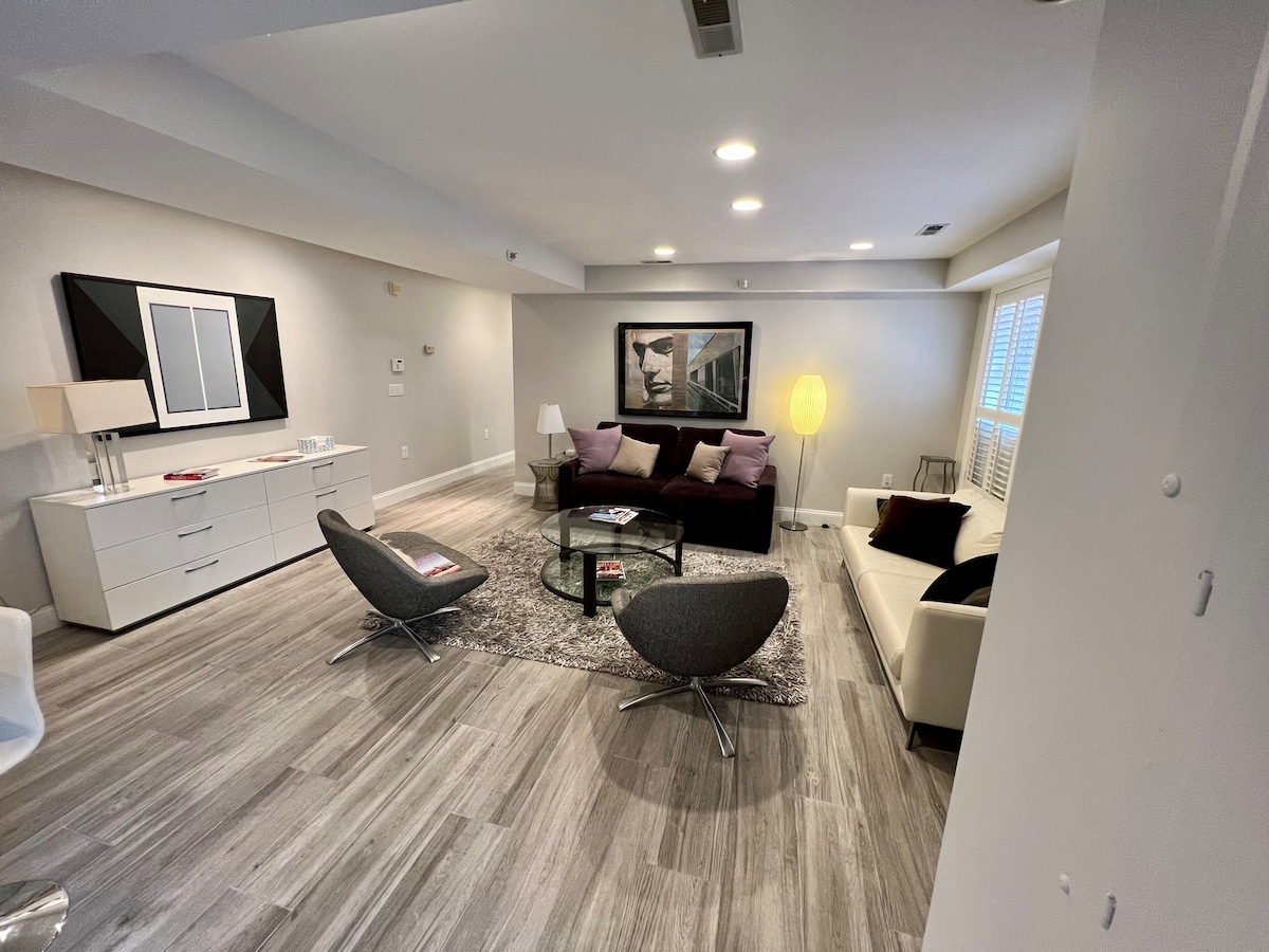 Newly renovated 1200 sq. ft. flat in heart of trendy Logan Circle. Light-filled, warm wood floors, new furnishings, private unit with open floor plan on first level of an historic row home built in 1898. Located just one block away from the restaurants, coffee shops, bars, theaters, and LGBTQ nightlife on 14th St. Whole Foods, CVS, Trader Joe’s, Dupont Circle and U St neighborhoods, metro stops, are all steps away. Short taxi/metro/walk to National Mall, Convention Center, and sightseeing.
