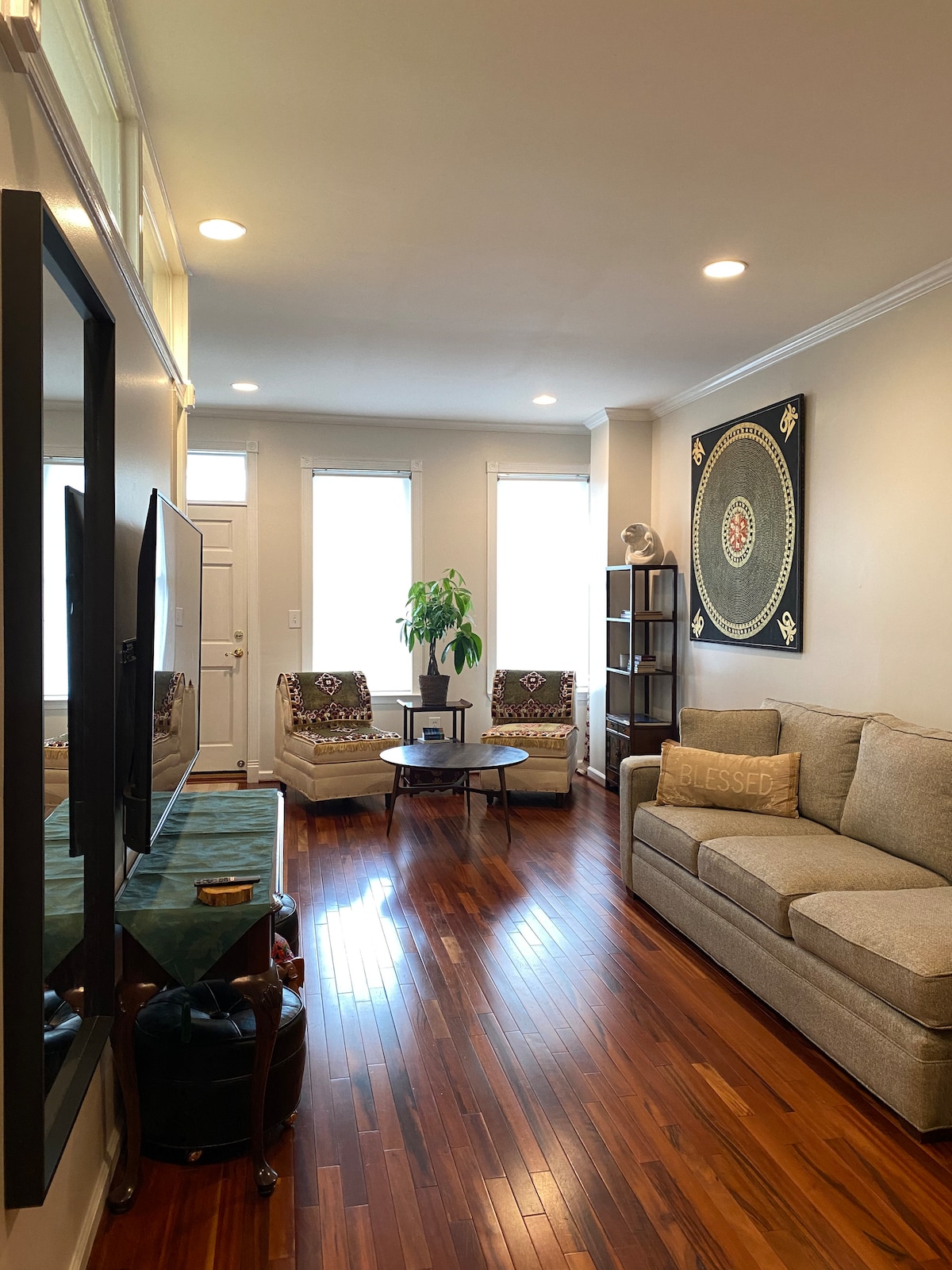 Newly renovated, spacious, private, designer home on a beautiful tree lined residential street in Logan Circle / Shaw. Pro-cleaned by an experienced team. Thoughtful and kind host. Restaurants, grocery stores, bars, and coffee shops all within a 5 minute walk. The metro is a 7 minute walk and the Convention Center is a 6 minute walk from the property. Guests have full control over modern Central Air Conditioning and Heating. All towels and linens are spotless white and hotel quality.