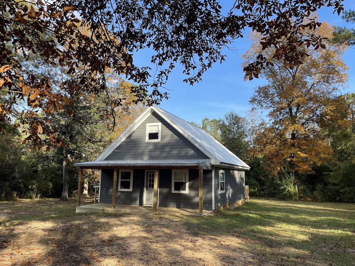 Escape to the Bogue Chitto River in Mississippi! This elevated tiny house sits on a private sandbar, perfect for swimming, relaxing, and building sandcastles. The cabin features 1 bedroom, 1 bathroom, a full kitchen, and a pullout couch to comfortably sleep up to 4 guests. Enjoy evenings around the fire pit or relax on the oversized porch. Located a mile off the main road for privacy—bring your golf cart or side-by-side to explore. Perfect for couples, families, or friends.