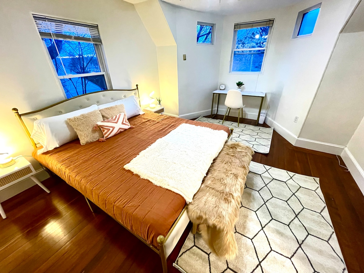Keep it simple at this peaceful and centrally-located unit. Unit is the last house on a private super quiet dead-end road, yet 2 minute walk to stores and restaurants. This newly renovated 2 bedroom unit is perfect for your stay in the Boston area. Its conveniently located to public transportation, shopping, parks, restaurants, highway 95, 90, Rt. 2 and more. A private outdoor deck space, big yard, in unit laundry, central AC and off street parking for 2 cars will make your stay complete.