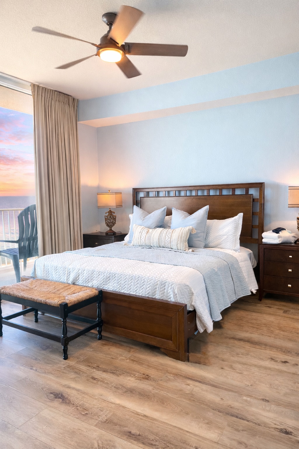 This 7th-floor corner unit condo at Tidewater Beach Resort offers breathtaking panoramic views of the endless shoreline of the emerald Gulf Coast. From the private balcony or the comfort of the living room sofa or dining table, enjoy stunning sunsets over the ocean and dazzling city lights at night. Resort boasts incredible amenities, including two lagoon-style pools, a heated indoor pool, hot tubs, a state-of-the-art fitness center with a Roman spa, a movie theater, and private beach access.