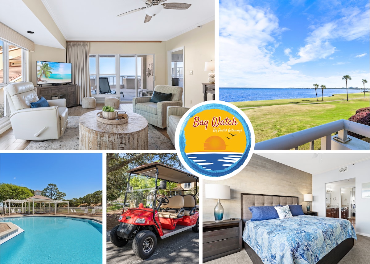 Welcome to our beach condo in Sandestin Golf and Beach Resort! This 2400 acre Destin Resort offers golf, pools, beach, tennis, biking, boating, fishing, shopping, walking village, movie theater, and more! We are offering you a clean, comfortable condo with 2 large bedrooms, 3 baths, queen sofa bed, and washer/dryer. Enjoy the balcony off one bedroom, screened porch with Bay view, complimentary GOLF CART, and access to 2 free heated pools! Family friendly! Come enjoy our HAPPY PLACE! NO PETS