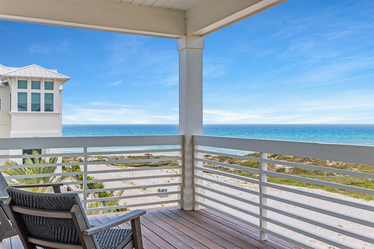 SEARENITY is a 3 Bed/ 3 FULL bath single family home located on 30A in Old Seacrest. Enjoy beautiful ocean views and a 3 min/ 0.1 walk (map quest walking) to a quiet, gorgeous beach. Our PUBLIC Beach access is RARE. There is NO PARKING so it is always quieter than any other access points. All beach necessities provided. Secluded back yard with outdoor kitchen and private salt water pool (Heated off season). Well equipped kitchen with coffee bar/regular bar. Balcony with ocean views and sunsets.