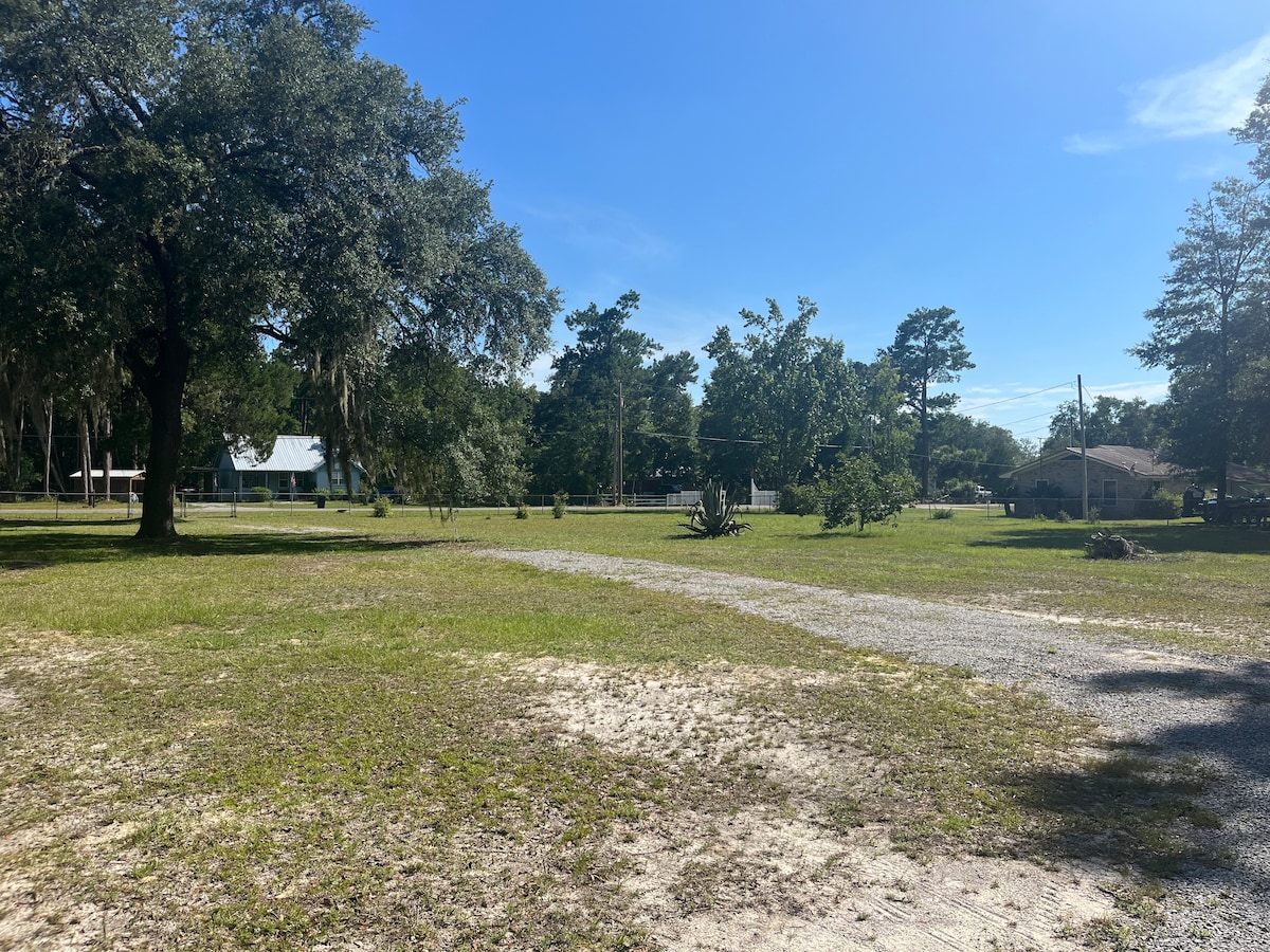 The Camper is NOT FOR RENT. Only the land and utilities on the given parcel, total .5 acres large lot. Bring your campers and boats. just 5 minutes from the Choctawhatchee bay 10 minutes From The beaches of 30a. Plenty of space. Power pole can support 2 campers one with 50 W and a basic 110 plug in Only. Water can be supplied to fit.