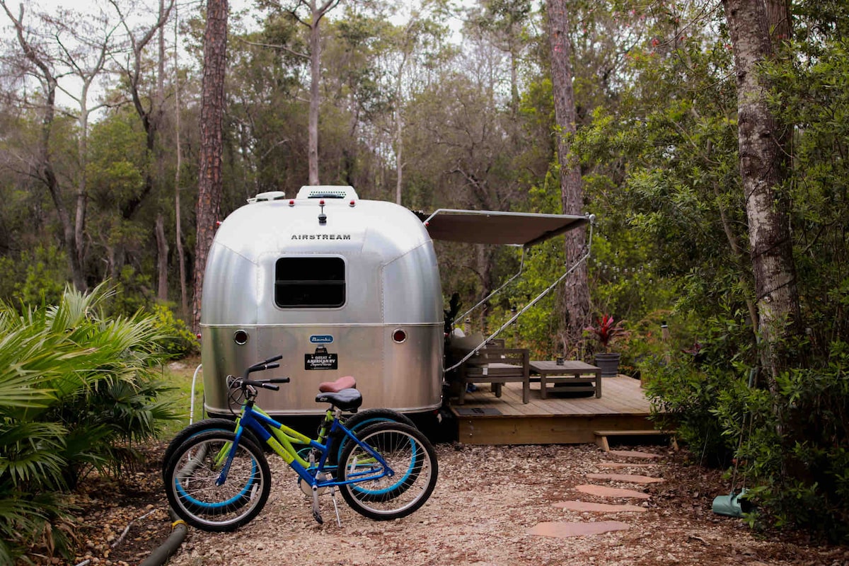 Reconnect with nature at this unforgettable escape. Our 22 ft brand new (Summer 2022) Airstream Bambi is just a 0.6 mile commute to our neighborhood’s deeded public beach access point , yet is tucked away down a dirt road (no 4x4 necessary!). Close enough to 30A to hear the ocean in the evenings/early mornings, but far enough away to miss the traffic noise. You’re likely to see a deer running around and you’ll be able to see the sky/stars near to what you’d expect to see in a National Park