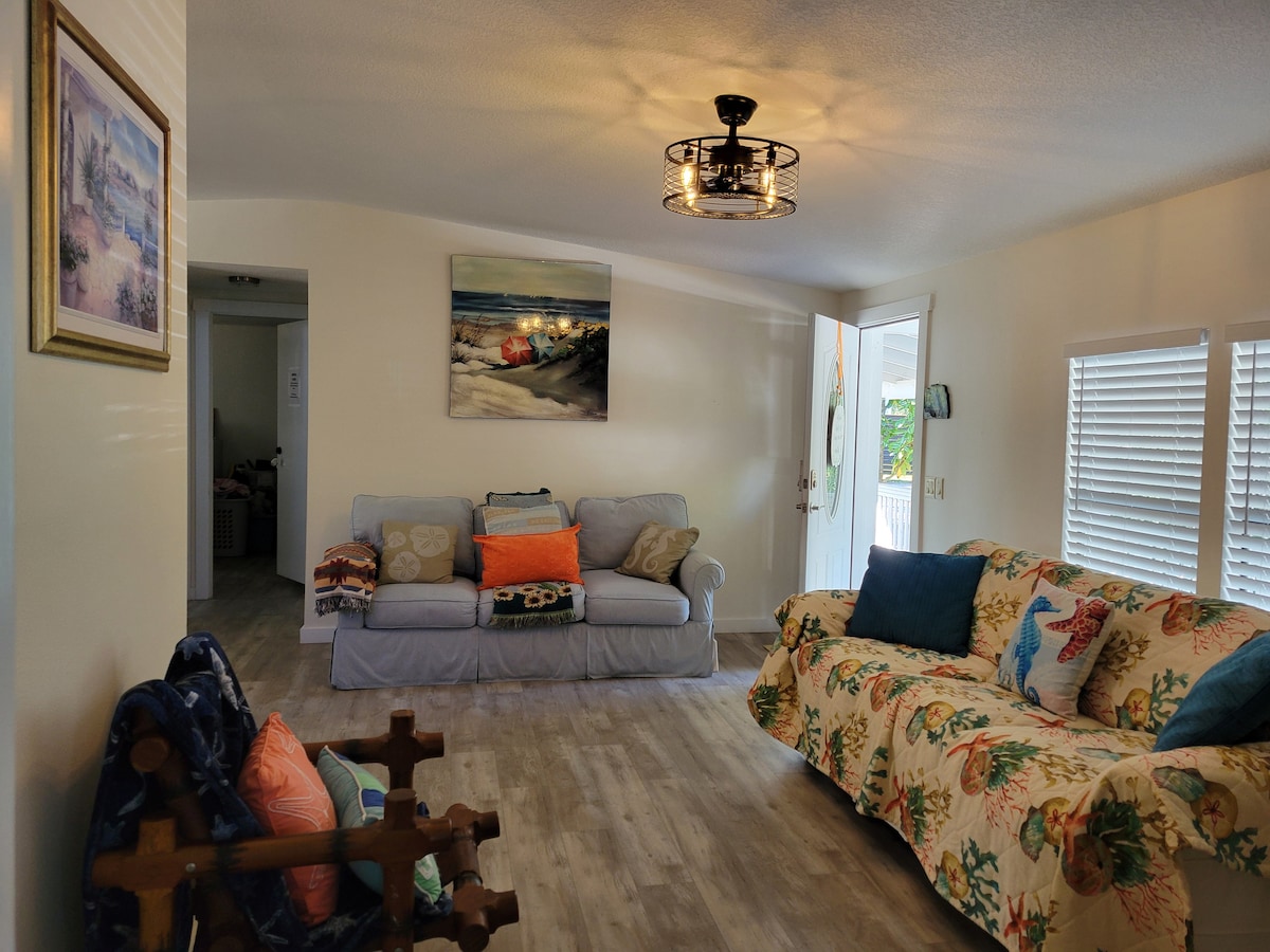 Beach, Lake, Sunshine, Sunset near 30A & PCB. Newly Renovated Tiny Home, central heat/air, boasting 3 bedrooms 2 baths is situated just a stone's throw away from the scenic Lake Powell in the West End of PCB. The property showcases a brand-new roof, & striking vinyl flooring. Stocked kitchen, dishwasher, inclusion of Washer, Dryer machines. water heater, wifi. You can unwind on the charming porch & free parking boats, construction trucks trailers & public beach.