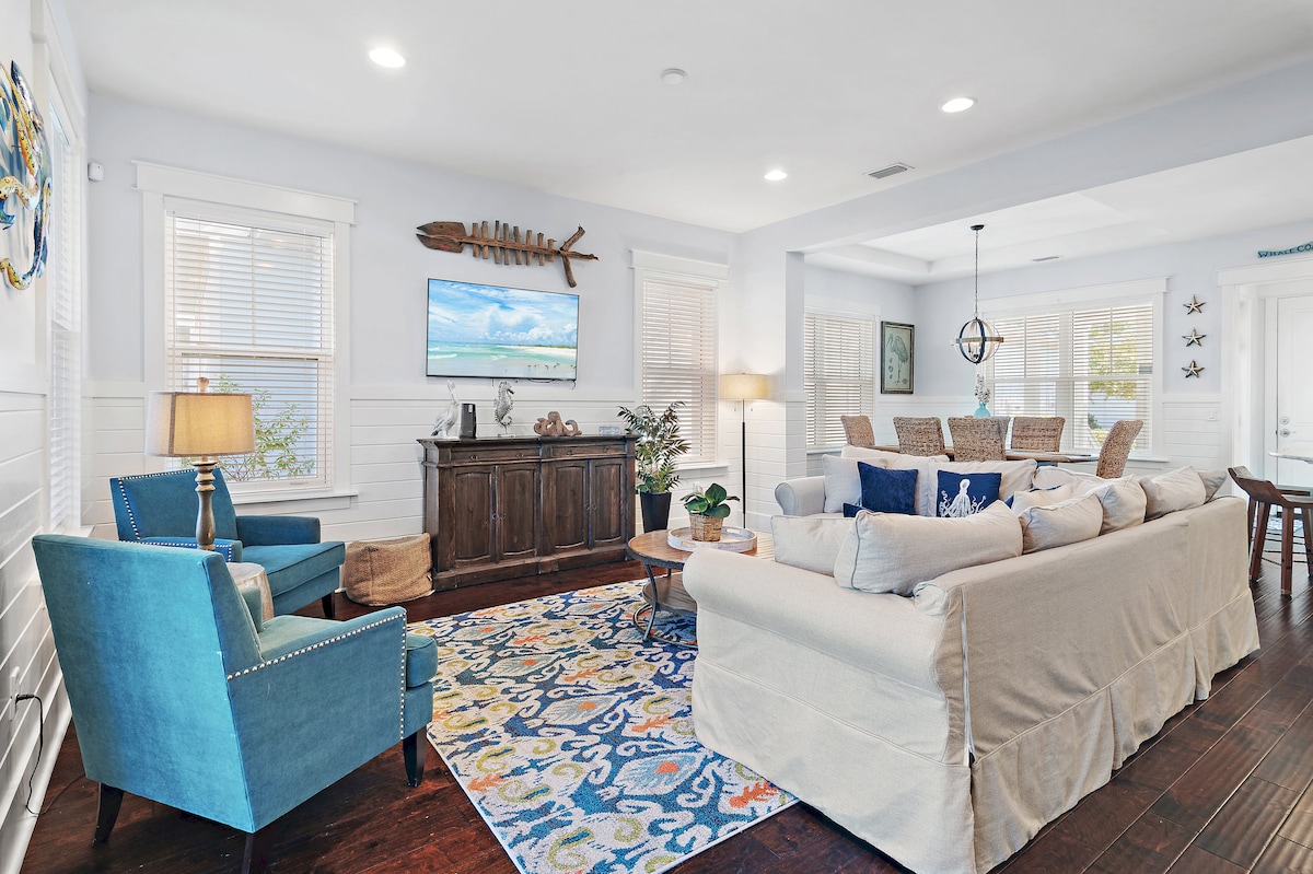 Inlet Oasis is a family friendly home in Inlet Beach near 30A. Only a 4-minute drive to Rosemary Beach & 3-minute drive to the white, sugar sand & emerald beach. A one minute walk to the pool. We include it all!!! 4 bikes, beach chairs, umbrella, stand up paddle board, life jackets, beach toys, beach towels, beach wagon and bike trailer, 2 highchairs, a Pack -N-Play and a well-stocked kitchen. Avenue 30A is 1 minute away with many restaurants within a 5 minute walk. Come Relax & unwind!!!