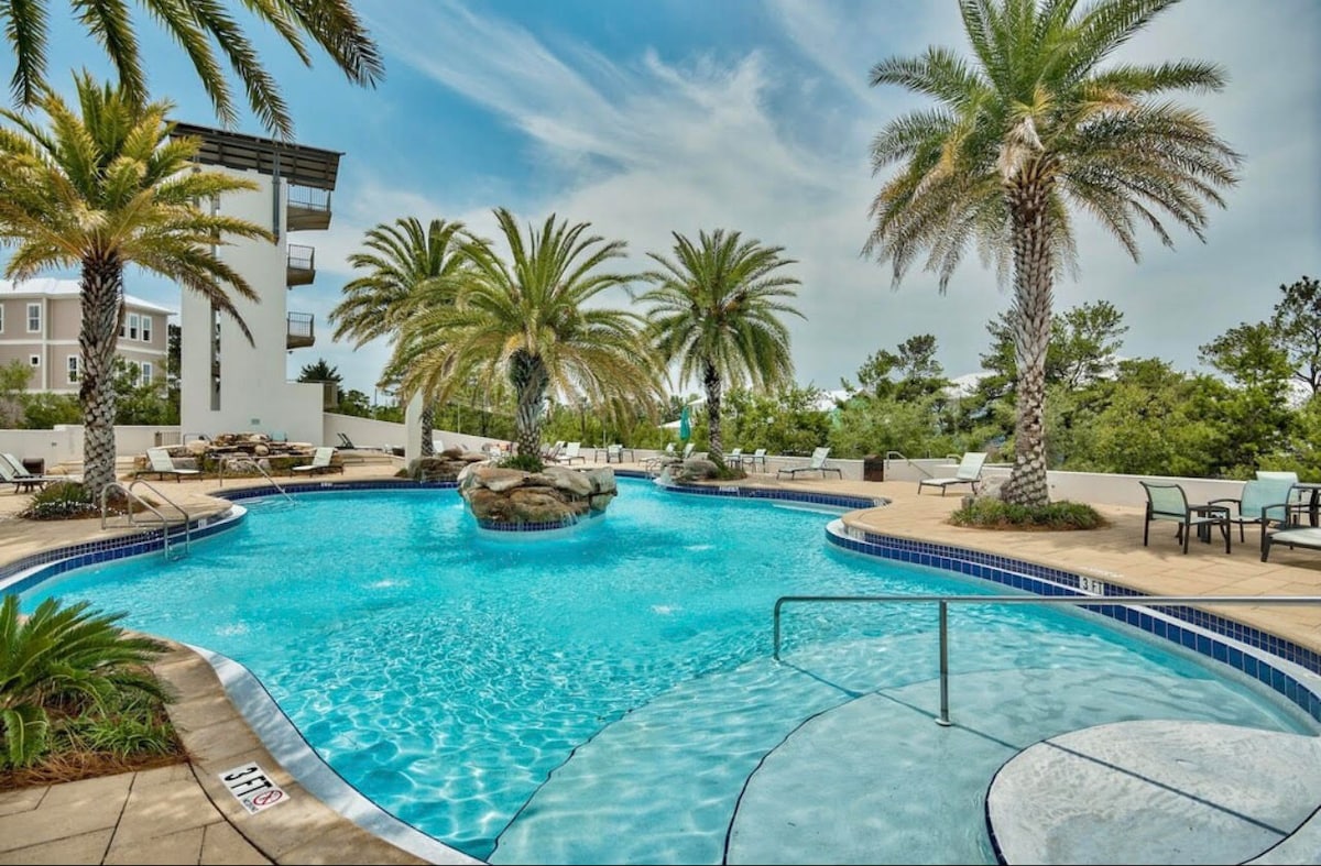 Leave your worries behind at our hideaway on 30A. Immaculate sugar sand beaches line this quaint Gulf coast town. Sit back and enjoy a relaxing day on the beach or spend some time hiking or biking on nearby paths. Family friendly 1st floor condo boasts 3 bedrooms and 2 bathrooms with laundry machine and games. Kids will love the triple bunk! Condo's pool is adjacent to a pond where turtles or frogs can be found. The nearby town is home to several savory restaurants within walking distance.