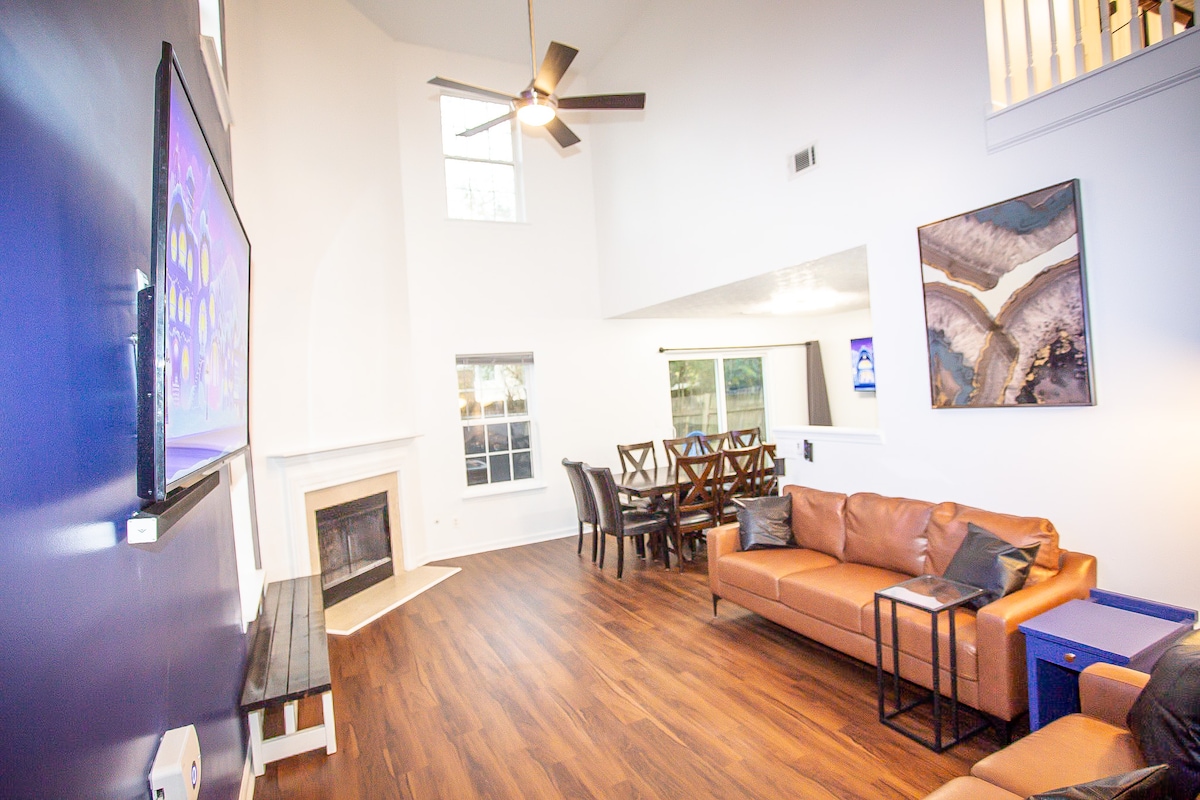 Set deep in the suburbs, our beautiful secluded basement apartment provides a luxurious space for traveling guests and families. We are located perfectly between Atlanta and Athens for a night out in Atlanta or attending a UGA game in Athens. This private apartment provides a large bedroom with a queen bed, fully stocked kitchen, a spacious living room, small office space, gaming entertainment, hot tub, fire pit, and Wi-fi! Our paradise suite is your best stay for work or play!
