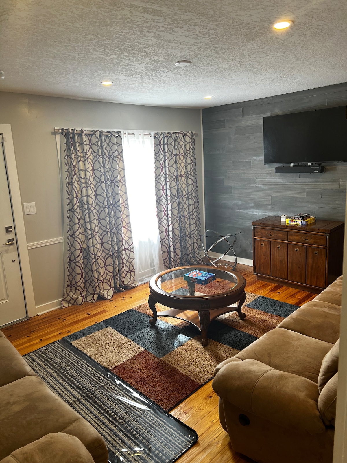 Stylish 2BR/2.5BA Home in the Heart of Downtown Monroe! Walk to Georgia’s largest antique square, local shops, and restaurants from this newly renovated home. Featuring brand-new furniture, a comfy sleeper sofa, cozy fire pit, and a charming front porch. Sleeps 6 comfortably—perfect for a relaxing getaway, business trip, or weekend adventure! Enjoy a fully equipped kitchen, fast Wi-Fi, smart TVs, and a fenced backyard—ideal for longer stays or working remotely.