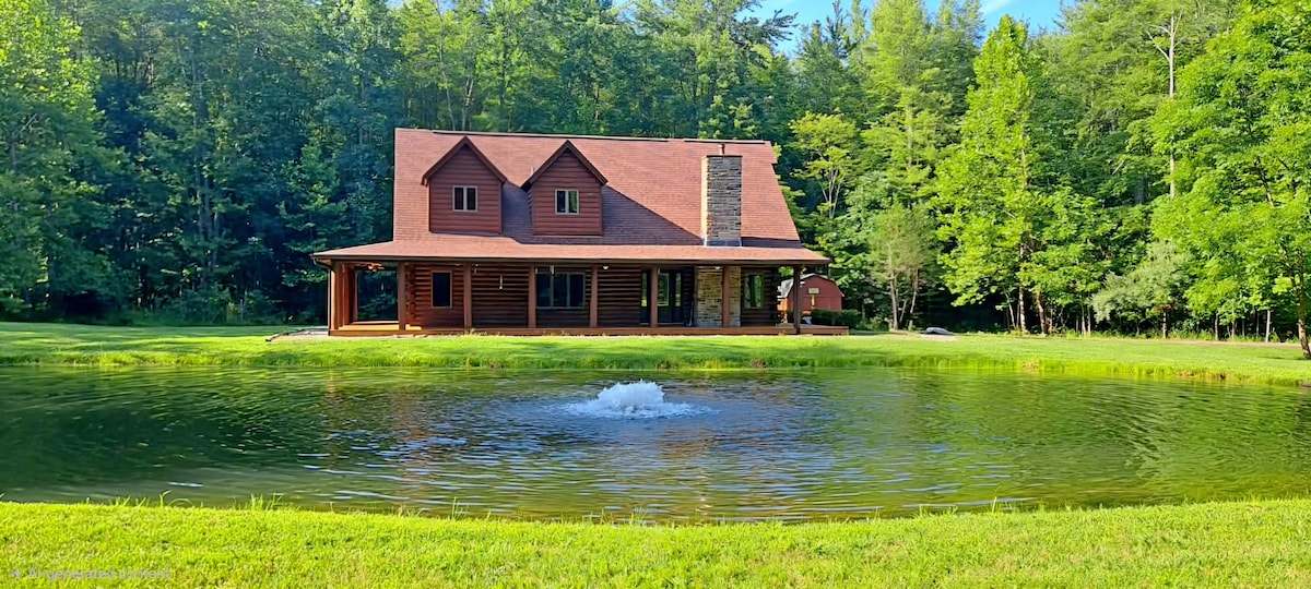 Three Pines is a rustic log cabin located on 17 acres with a forest view. Originally constructed in the 1790s by a Revolutionary War veteran, it was relocated to the present location in 2011, where it was reimagined with added modern conveniences. The cabin is great for history buffs and those looking for some peace and quiet in a unique setting. The cabin can be rented with our other listing, The Lodge at Three Pines, which provides an additional bedroom, bathroom, and hang out space.