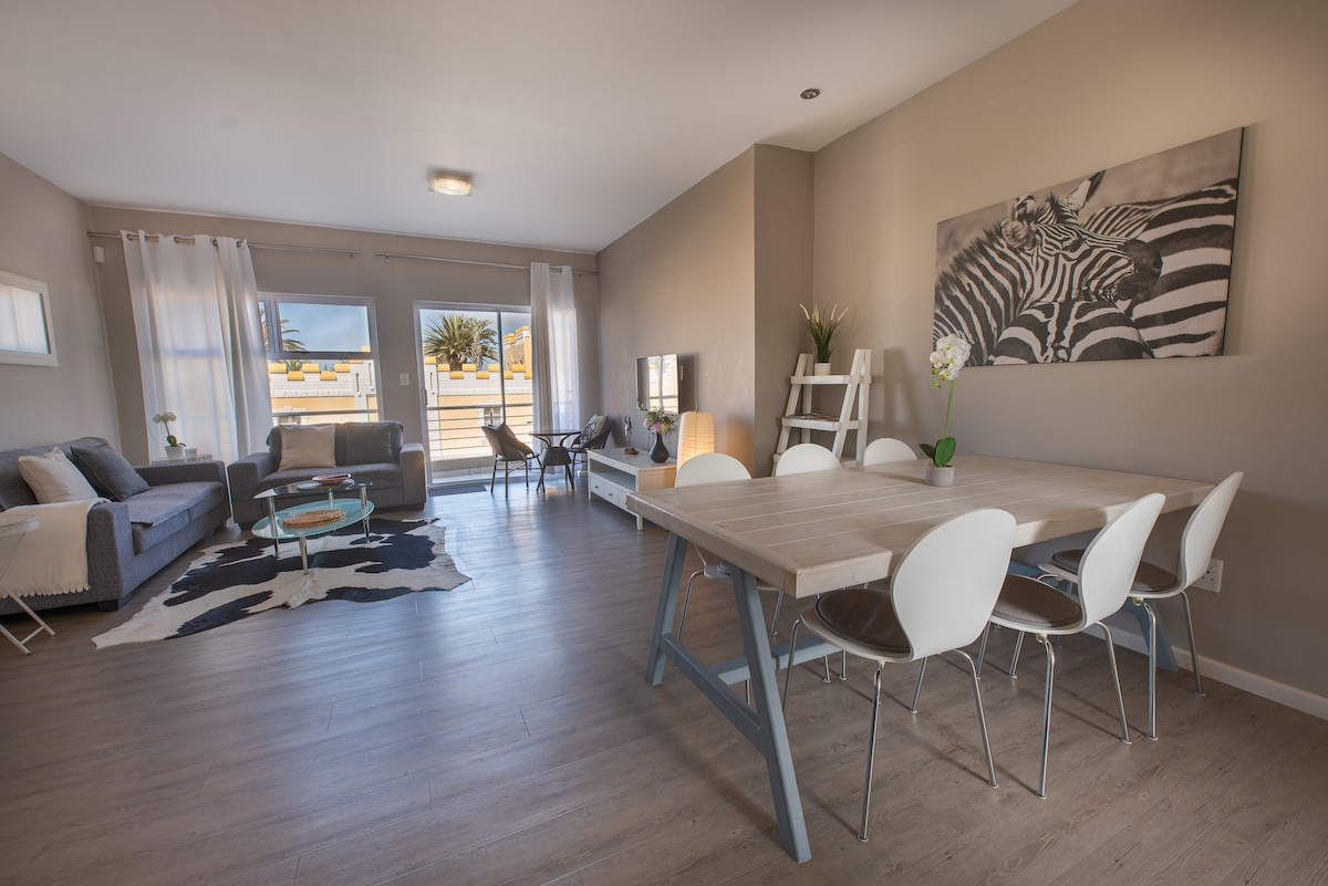 Sunset View No 7 is a delightful beachfront apartment on Long Beach / Langstrand. It has a beach house feel and has all the amenities your heart desires. Two comfortable bedrooms and a large open-plan living area make this the perfect getaway for the professional, a couple or even a small family. View gorgeous sunsets from the comfort of the master bedroom, the living room or the patio. The second bedroom overlooks the dunes.