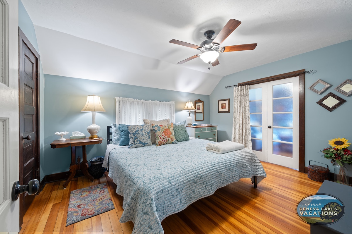 Steps from Lake Como! Our updated 3-bedrm cottage is just 5 houses off the shoreline and mins away from Lake Geneva. Inside you'll find an open living area, Lg kitchen, fast Wi-Fi and smart TV-perfect for family movie nights. Outside enjoy the shady yard and quick stroll to public lk access, local Pubs and boat rentals. 3 comfy bedrooms & 1 full bath Washer/dryer for longer stays Dedicated workspace & highspeed internet Ready for a peacefull getaway? Book your dates while they're still open!