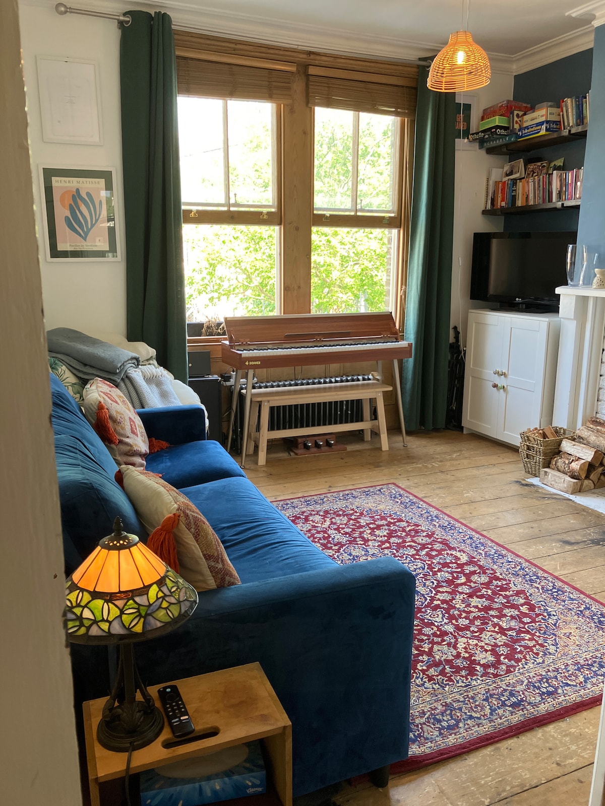 Small self contained Studio room on the ground floor of our contemporary timber-framed house. This unique street facing space has a large rear facing internal window looking into a shared work studio (there is a curtain). We are Located near buzzing cafes, galleries, parks, and landmarks, it’s well-connected to central London via nearby transport. A welcoming family live-workspace offering a comfortable and inspiring base to explore the city.