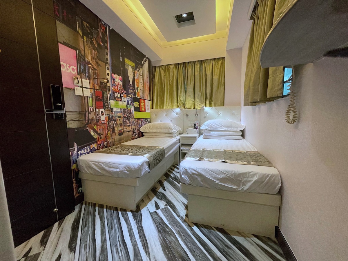 尖沙咀區特大雙床房(81),尖沙咀站C2出口1分鐘到達,市區核心, Netflix&WIFI