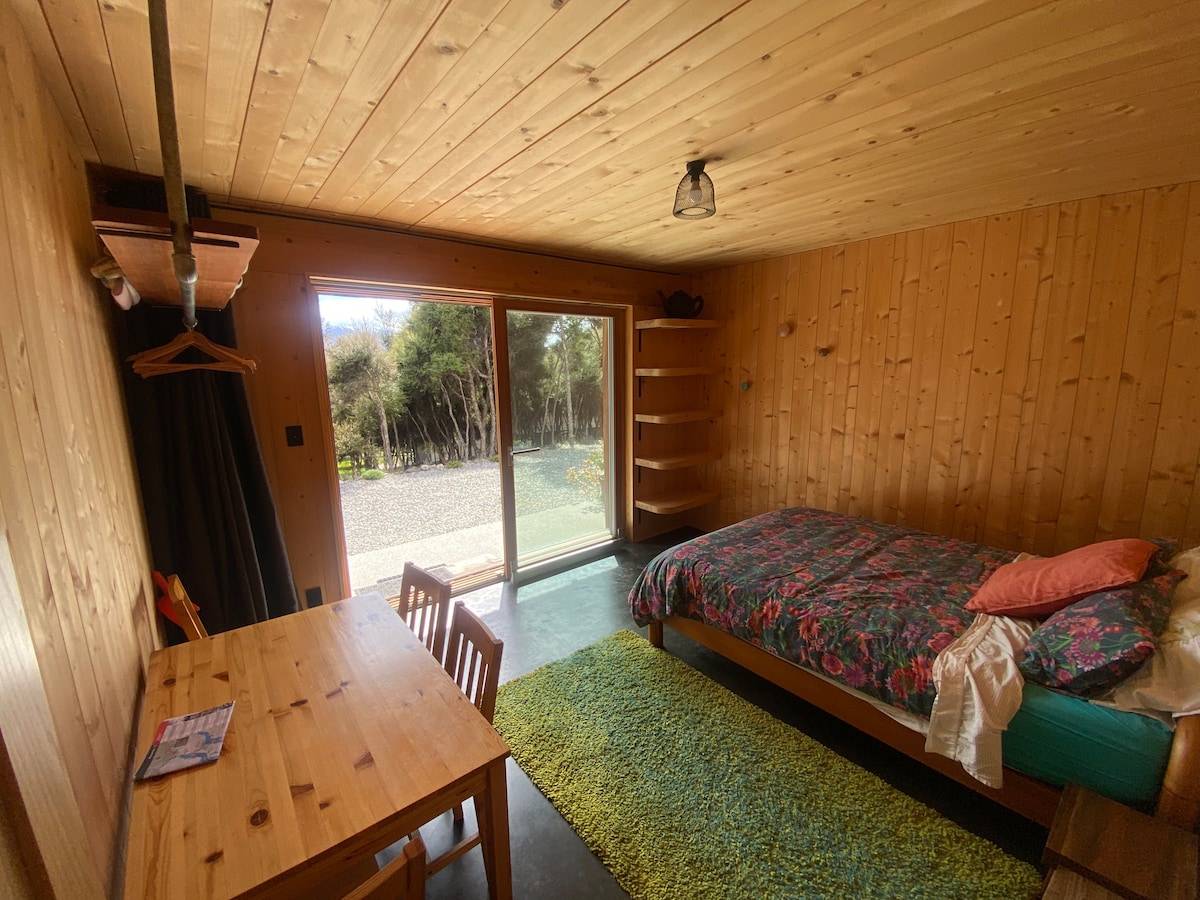 Central, spacious, ground-floor studio a few minutes walk through the pines to eclectic cafes, pristine lake and beautiful walks of Wanaka. Our studio apartment is a funky bolthole for your Wanaka adventures. Ideal for a couple and room for a small child too. Kitchenette - kettle, toaster, fridge and microwave so you can make breakfast and heat up a takeaway too - perfect for the Thai next door! Note: a porta cot is available on request and subject to availability