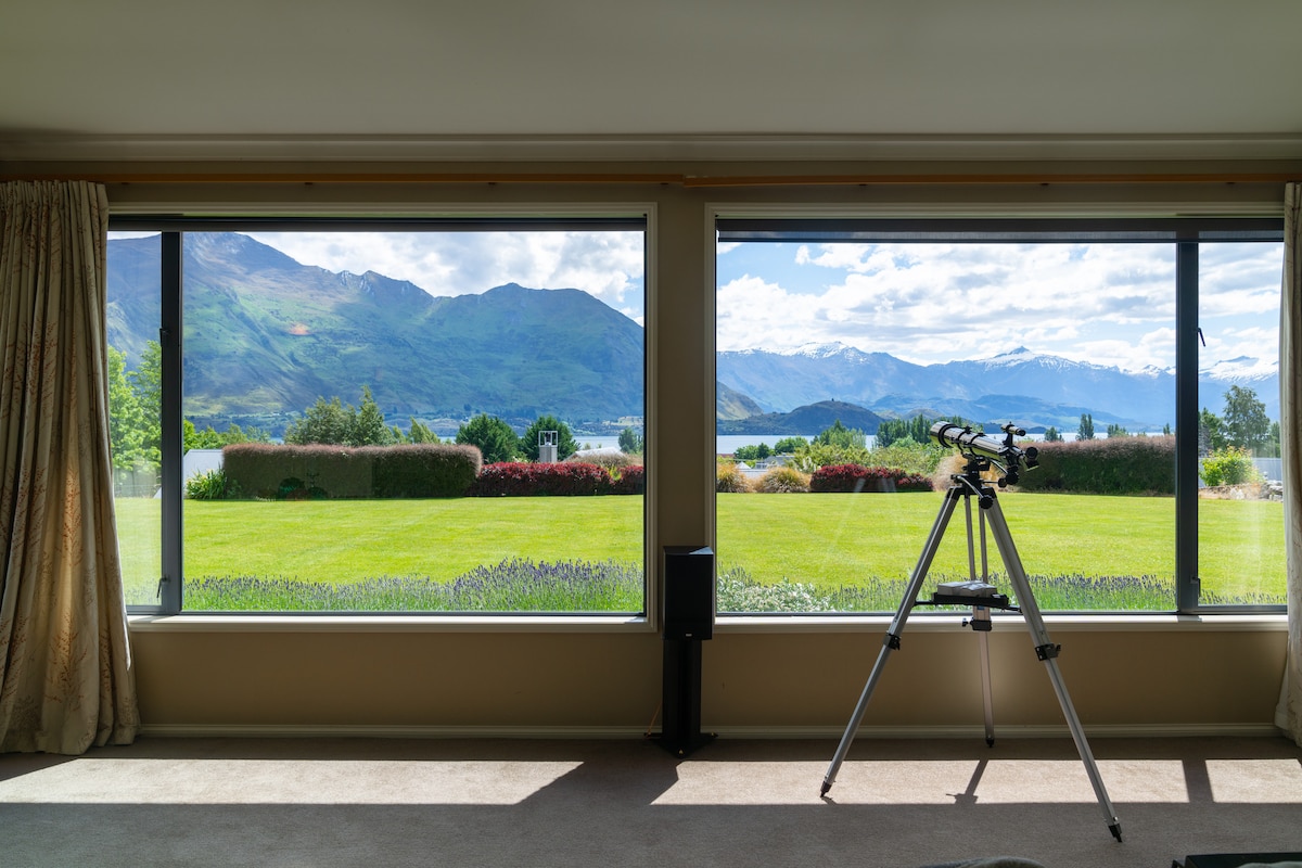 Uninterrupted lake views await your next very special getaway. This retreat is a perfect blend of luxe and retro in an architecturally designed 1960's Cottage nestled in outstanding natural beauty. There is nothing between you and the spectacular lake view apart from some deep breaths, a wine and some down time. This is the best view in Lake Hawea! The Cottage sits at the front of the property with a fenced off and completely separate Corner Peak Studio at the back of the property.