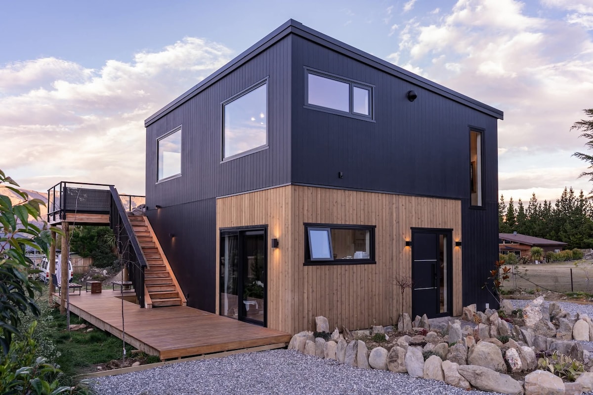 Welcome to our luxurious tiny house located in the heart of Wanaka. This stunningly designed house features high-end finishes and amenities that will make your stay unforgettable. Featuring all day sun on the large deck, two queen loft bedrooms, full kitchen, dining and lounge. A highlight is the full tiled shower and bathroom with under tile heating. Outside there are stunning mountain views and a fire-pit to enjoy. The Alpine Chalet tiny house is the perfect getaway spot for your next holiday.