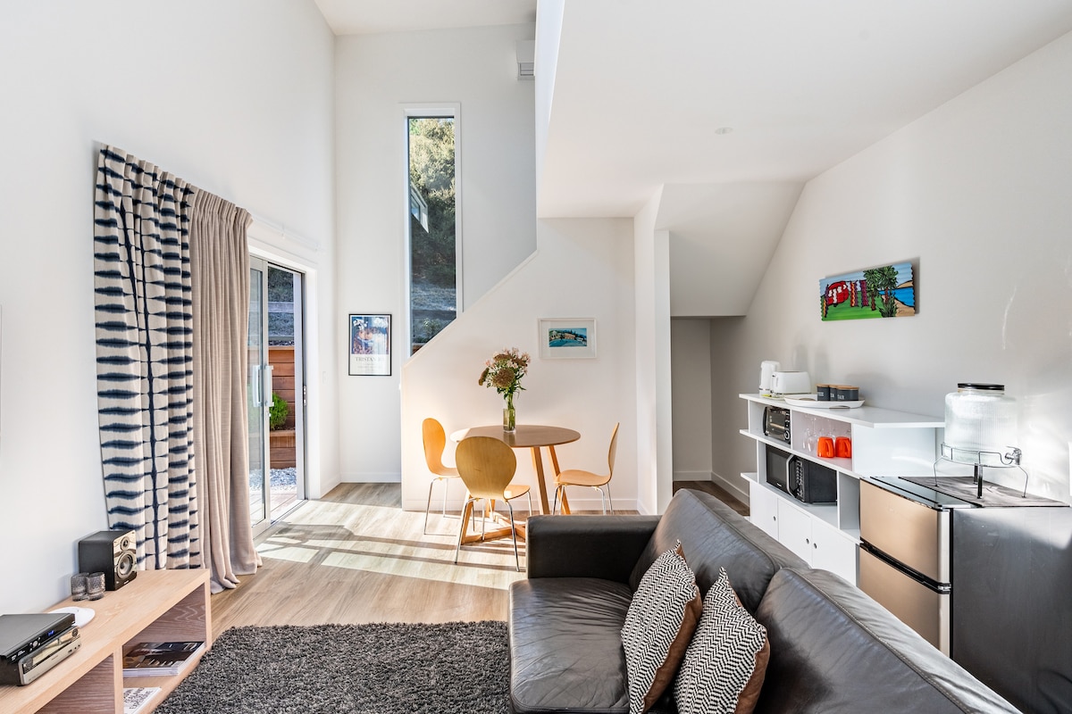 Stylishly built studio space – away from the hustle and bustle of town, yet only 7 minutes drive to downtown Wanaka. This stay has private access away from the main house. With undercover parking, a deck area, outdoor seating and mountain views towards Mount Gold and Mount Maude, this studio is a cosy, well-equipped space from which to base your Wanaka adventures or simply relax. Comfortable queen bed, TV, Kitchenette, heat pump and air-conditioning, with tea coffee and milk provided.