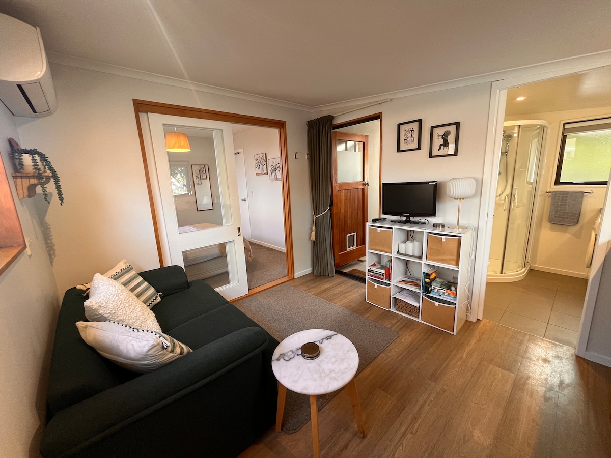 NO EXTRA COSTS The studio is attached to our residence, accessed by its own private entrance Brand new , modern decor , lounge area, queen bed , ensuite with super deep bath tub. The space has a mini fridge, microwave, tea, coffee, milk, jug ,cutlery, and crockery. There are no cooking facilities. You will be staying in a quiet residential subdivision, approximately 8-10 minute drive from the centre of town. 1 minute walk is a cafe/restaurant and garden bar and a well stocked grocery shop.