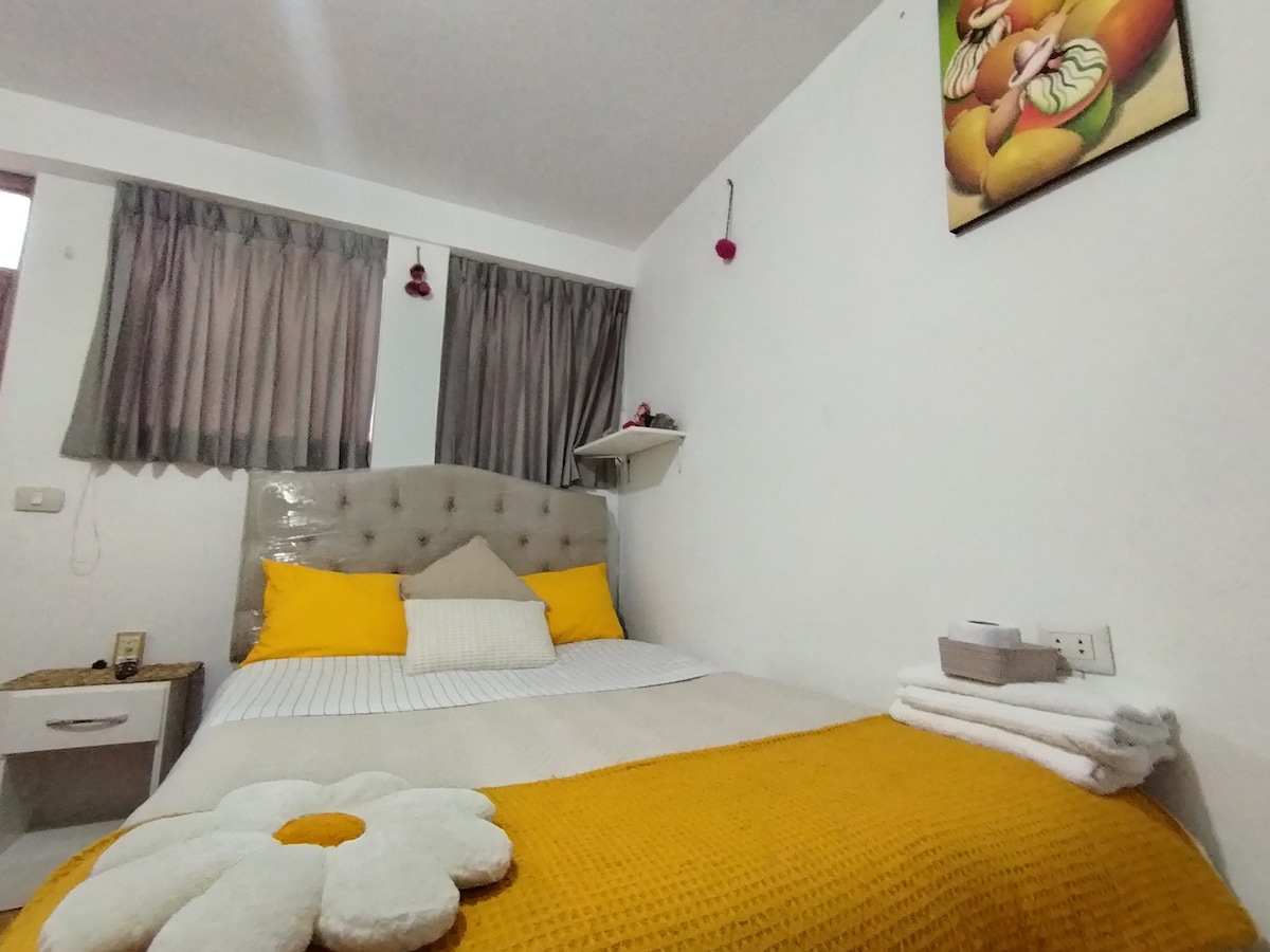 La habitación es grande, cómoda y acogedora con buena iluminacion. esta ubicada a 20 minutos caminando y 5 minutos en auto o transporte publico de la Plaza principal del Cusco, esta cerca de varias tiendas y restaurantes de todo tipo.